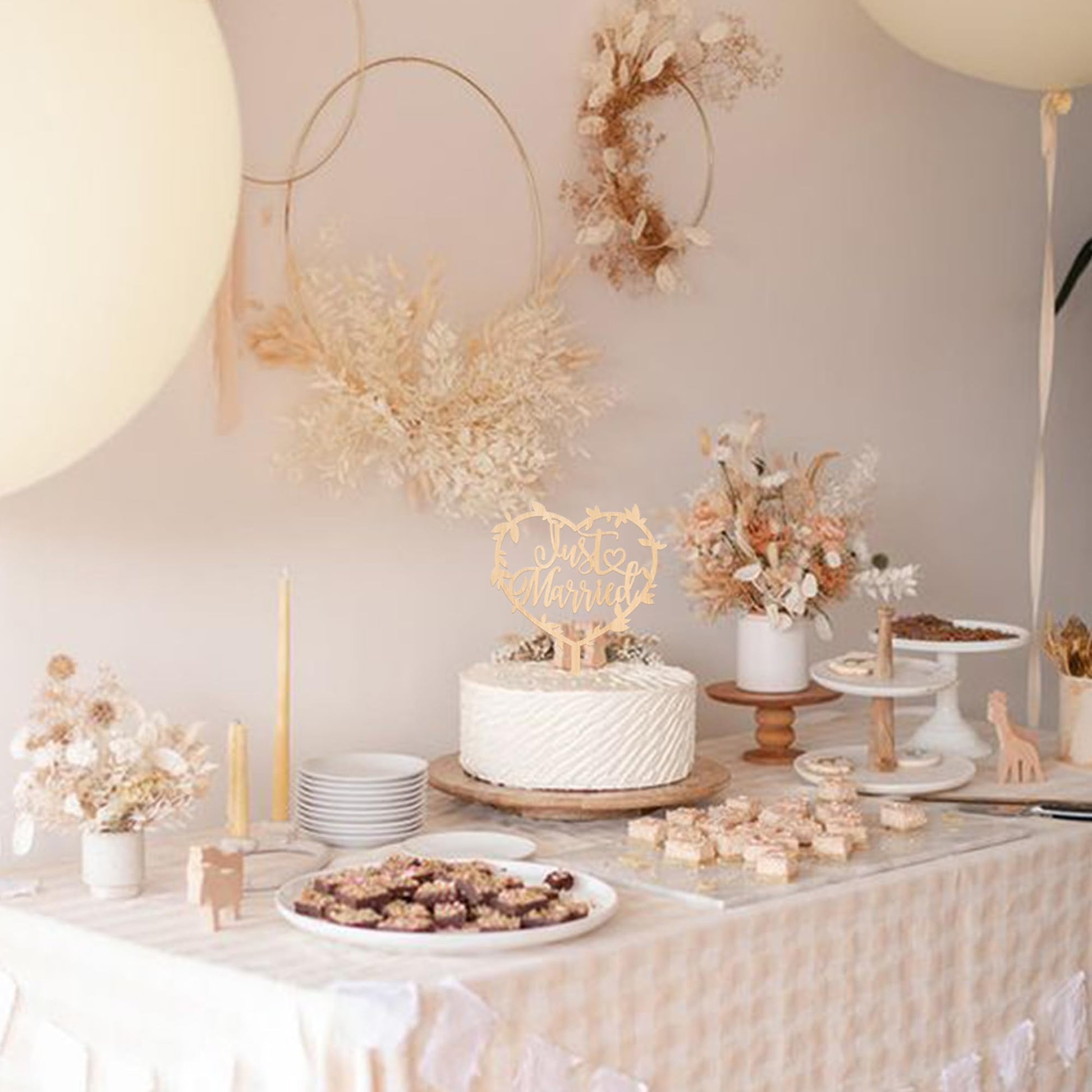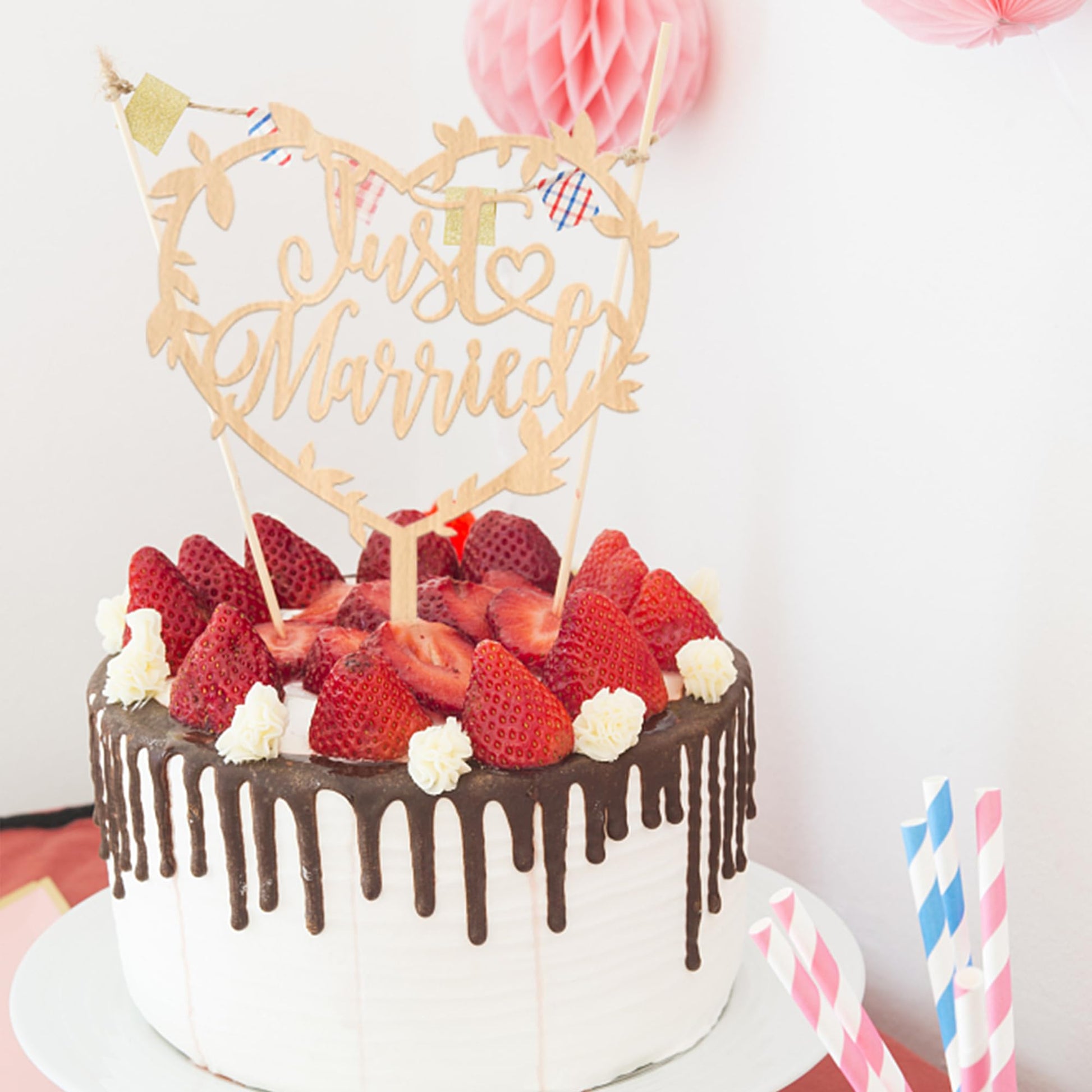Q: What occasions is the Just Married Cake Topper suitable for?A: This cake topper is perfect for various celebrations, including engagement parties, bridal showers, wedding anniversaries, and other theme parties. It adds a charming touch to cakes, cupcakes, and desserts.