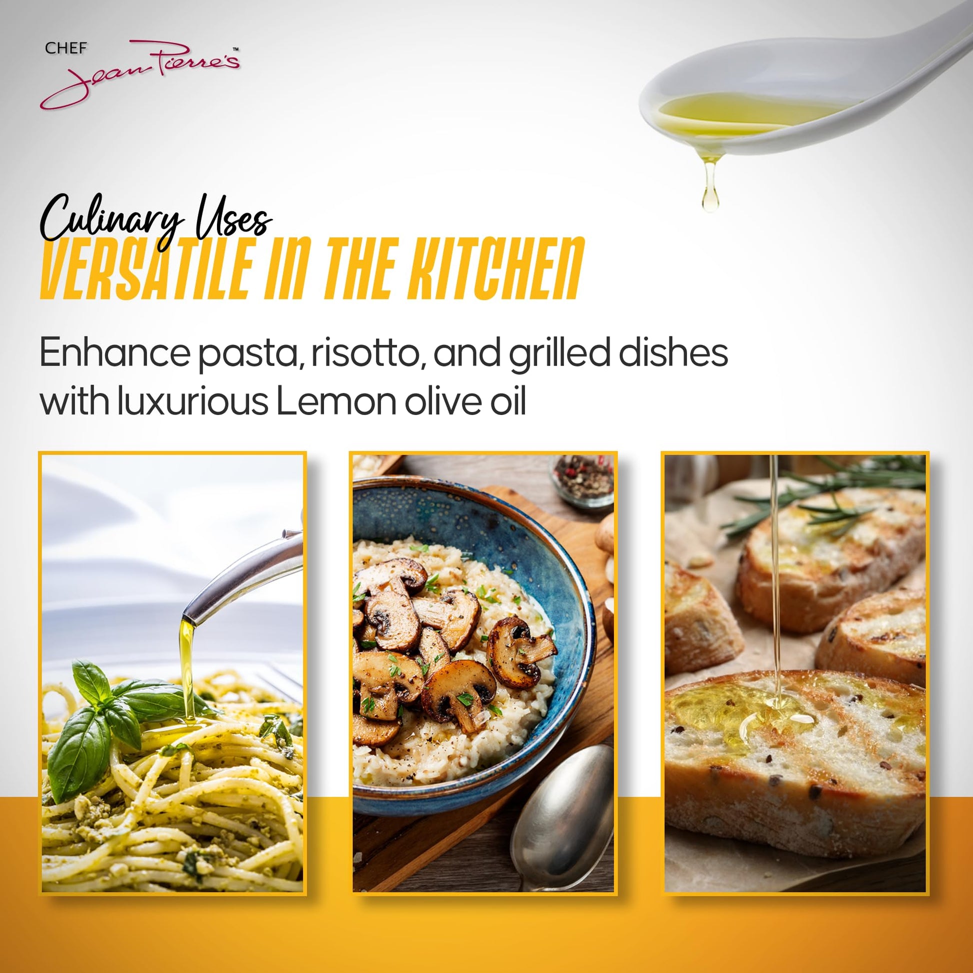 Introducing Our Premium Extra Virgin Olive Oil, A Culinary Delight That Elevates Your Cooking To New Heights. Our Lemon Olive Oil Is A Staple In Cooking And Is Used In A Variety Of Culinary Applications. It Serves As A Flavorful Base For Salad Dressings, Marinades, And Saut Ing. Extra Virgin Lemon Olive Oil Is Often Drizzled Over Finished Dishes To Enhance Their Taste And Provide A Distinctive Aroma. It Is Also A Key Ingredient In Mediterranean Dishes Like Pesto, Hummus, And Tapenade. Sourced From The Finest Groves Of Mediterranean Olives, Chef Jean Pierres Olive Oil Is Meticulously Cold-Pressed To Preserve Its Natural Flavors And Nutritional Benefits. With A Robust Yet Smooth Taste, It Adds Depth To Salads, Marinades, And Saut S. Our Olive Oil Is A Blend Of Rare Olive Varieties, Carefully Selected For A Distinctive Taste Profile. The Result Is A Harmonious Balance Of Fruity Notes, A Peppery Finish, And A Hint Of Grassiness That Distinguishes It From Ordinary Oils. Whether You'Re A Culinary Enthusiast Or A Health-Conscious Consumer, Our Extra Virgin Olive Oil Is The Perfect Choice. Elevate Your Culinary Experience With A Product That Embodies The Essence Of The Mediterranean, Crafted For Those Who Appreciate The Art Of Fine Cooking. Flavorful And Aromatic Complements Every Dish Versatile Use Add This Liquid Gold To Your Kitchen Repertoire Today And Savor The Rich, Nuanced Flavors It Brings To Every Dish.