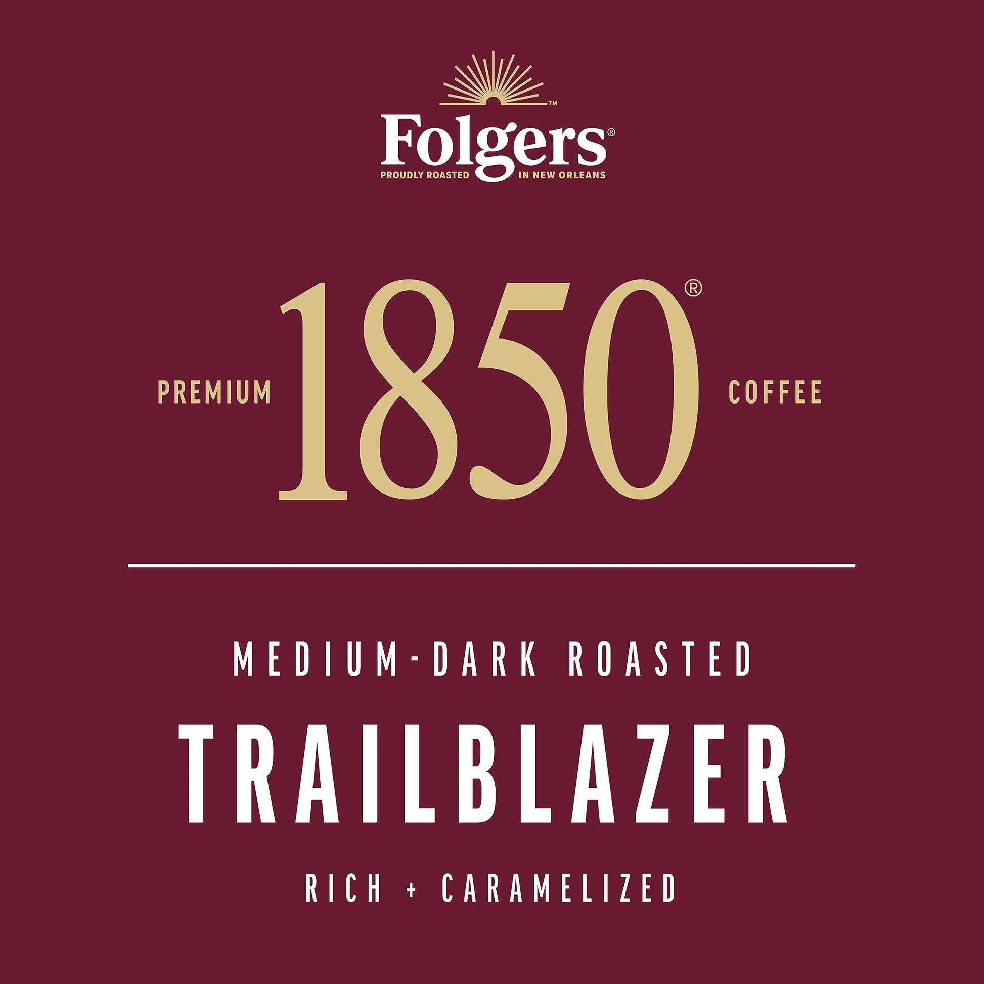 - Q: What makes 1850 by Folgers Trailblazer Medium Dark Roast Coffee unique? A: 1850 Trailblazer Medium-Dark Roast Coffee is crafted using fire-roasted, steel-cut coffee beans, offering a smooth blend with roasted nut and caramelized flavor notes. This unique roasting process ensures a consistent coffee flavor with less bitterness, providing a satisfying and balanced cup.