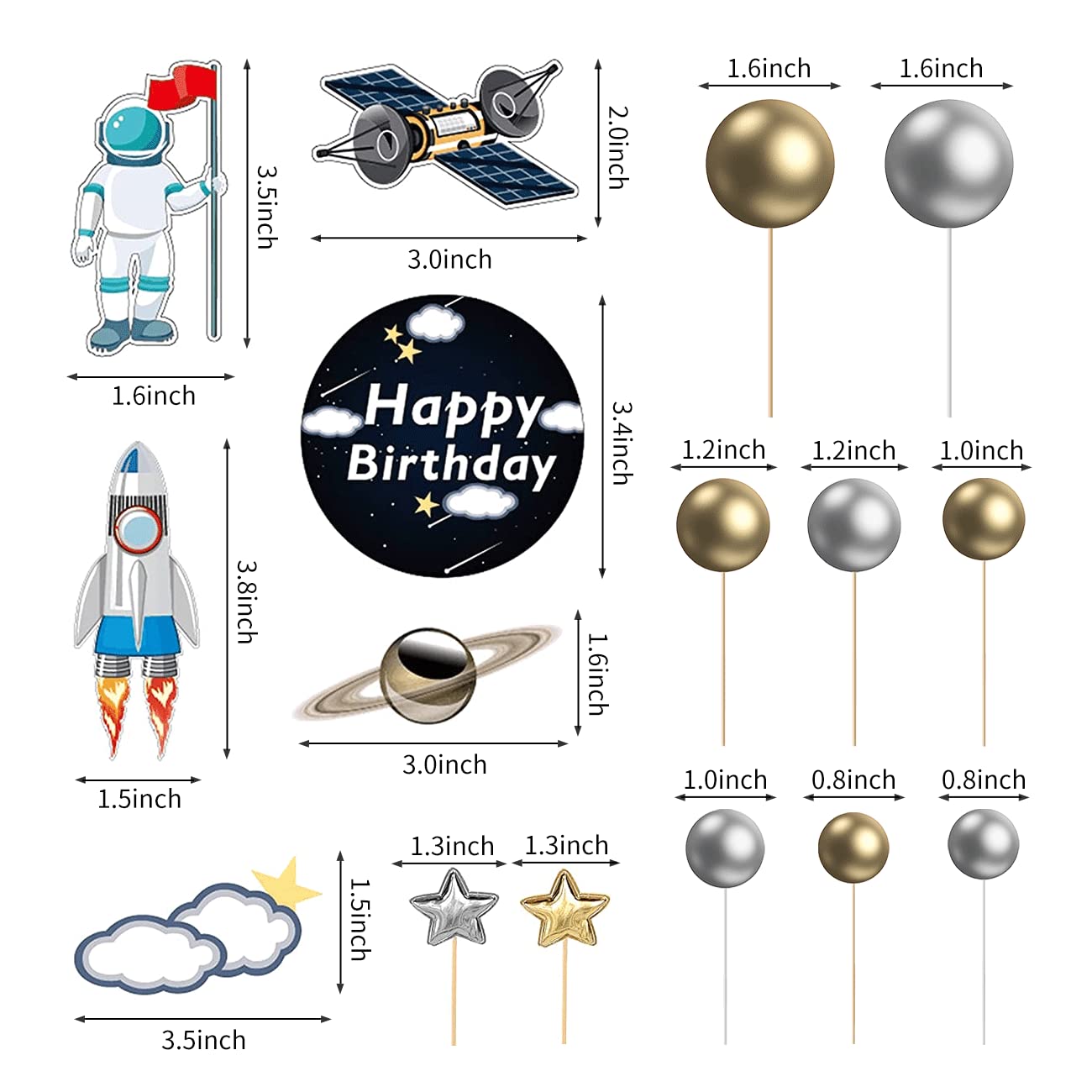 Q: What occasions are suitable for using these space-themed decorations?A: These cake toppers are perfect for various occasions, including birthday parties for boys and girls, baby showers, weddings, anniversaries, summer parties, and Christmas celebrations.