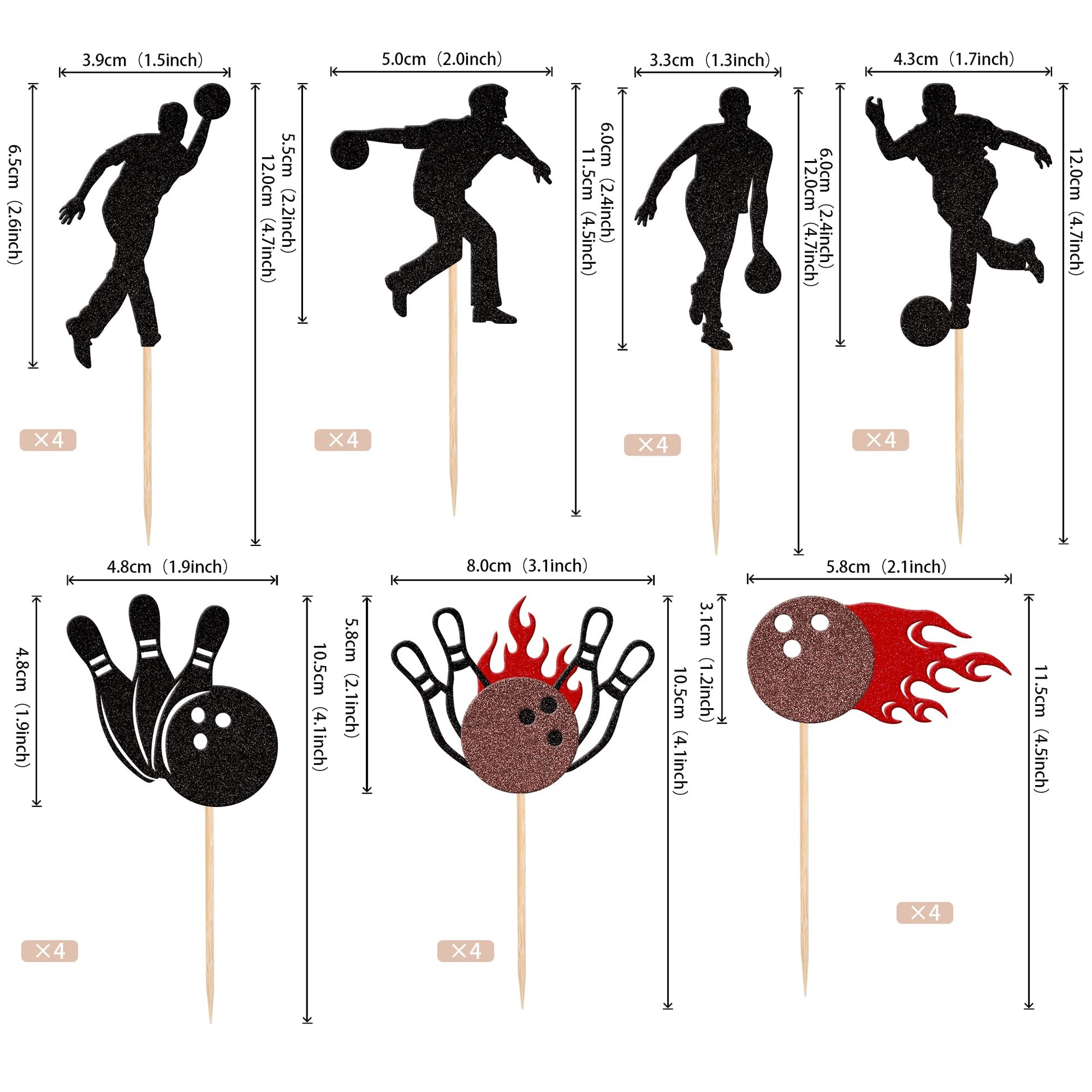 Bowling Alley Theme Baby Shower Birthday Party Cupcake Toppers Decorations Supplies Perfect For Bowling Alley Theme Party, Sports Theme Party, Baby Shower Theme Party, Bowling Player Birthday Party Cupcake Decorations Supplies. Pack Of 28 Pcs, 4 Pcs Of Each Design. The Size Is 1.5 *4.7 Inch / 2*4.5 Inch / 1.3*4.7 Inch / 1.7*4.7 Inch / 1.9*4.1 Inch / 3.1*4.1 Inch / 2.1*4.5 Inch ( With Stick ) Made Of High Quality Paper Card Stock And Food Grade Sticks,Thick And Sturdy. These Cupcake Toppers Are Single Glitter, The Back Is White, And They Are Intended For Decoration Only, Please Do Not Put Them In Oven Or Microwave. If The Item You Received Has Any Defects, Please Contact Us For Refund.We Will Deal With It Within 24 Hours.