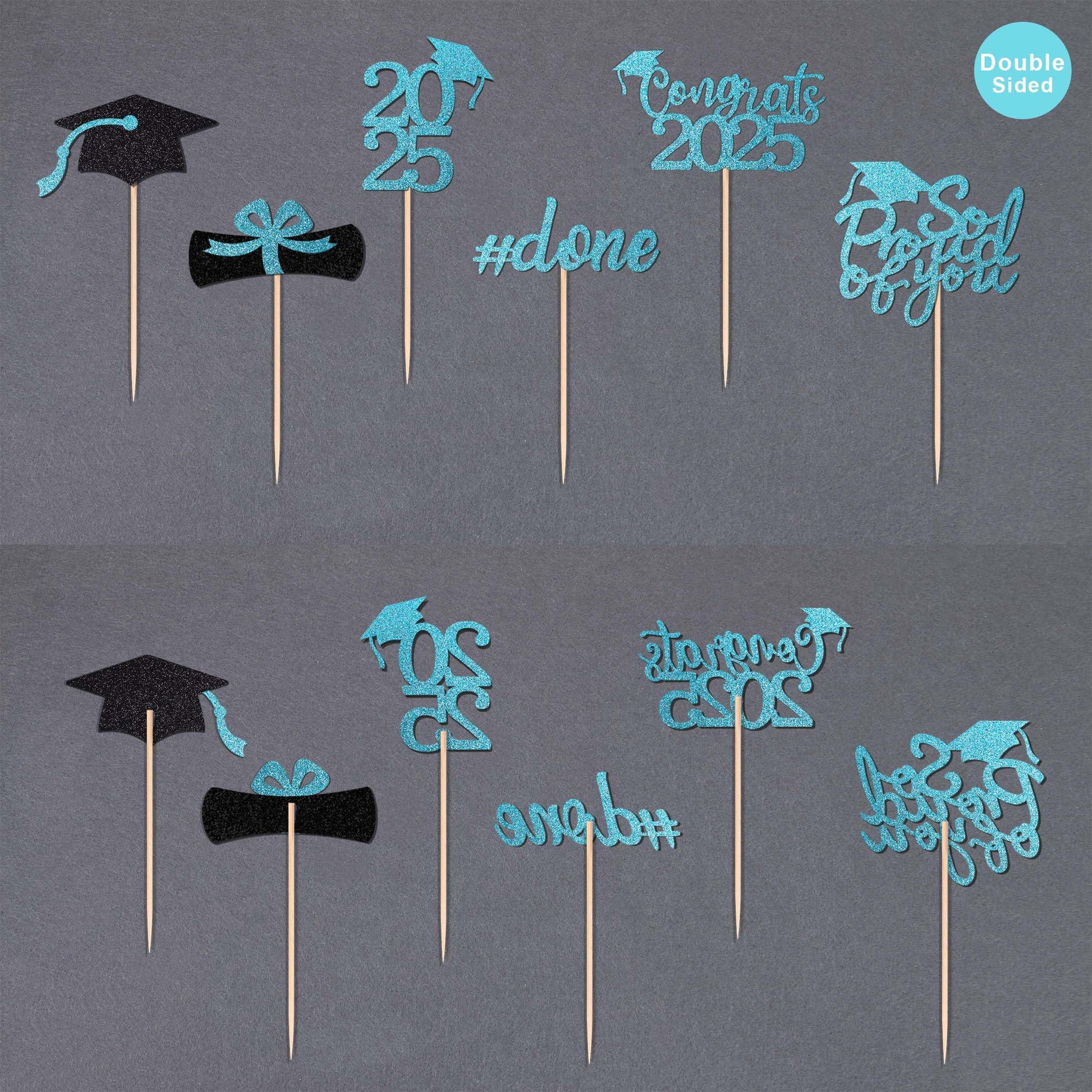 Q: Are the cupcake toppers safe for food use?A: Yes, the Class of 2025 cupcake toppers are made from high-quality double-sided glitter power card stock and food-grade wooden sticks, ensuring they are safe to use on cakes, cupcakes, fruits, and desserts.