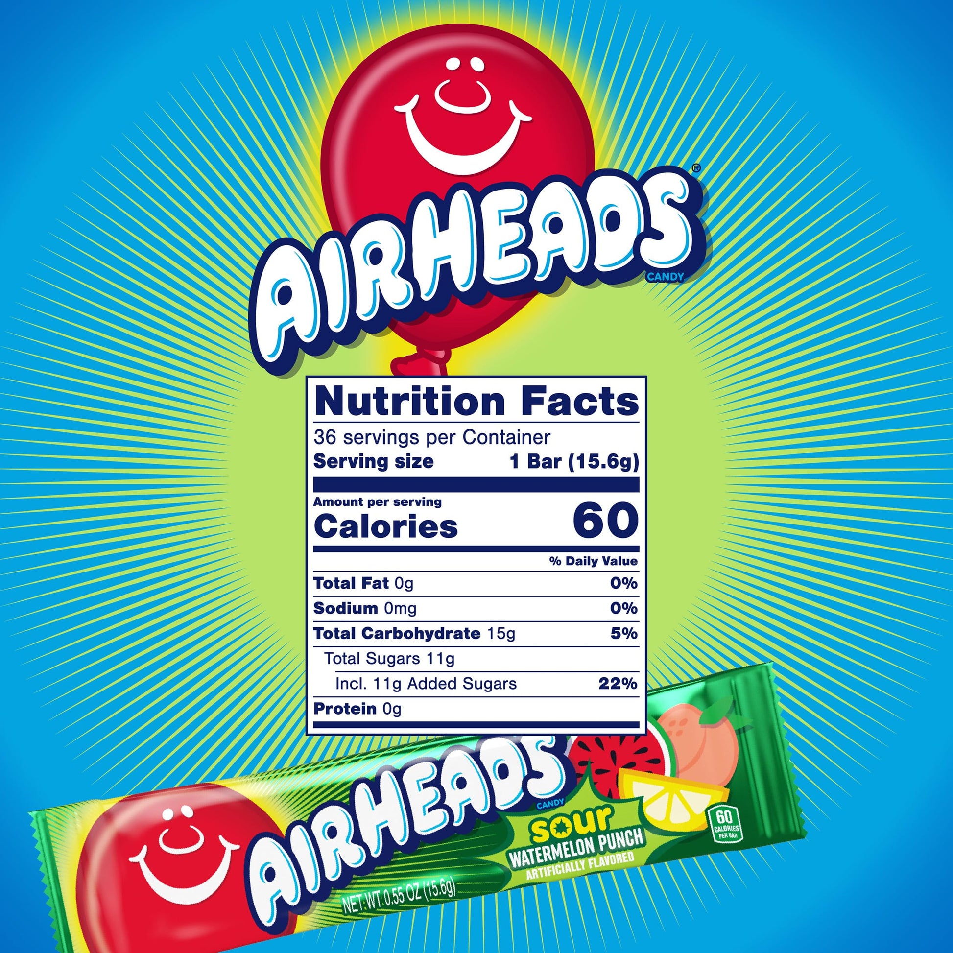 Q: How many bars are included in the Airheads SOUR Candy Bars pack?A: Each pack contains 36 individually wrapped Airheads SOUR Candy Bars, providing plenty of chewy candy to share with friends and family.