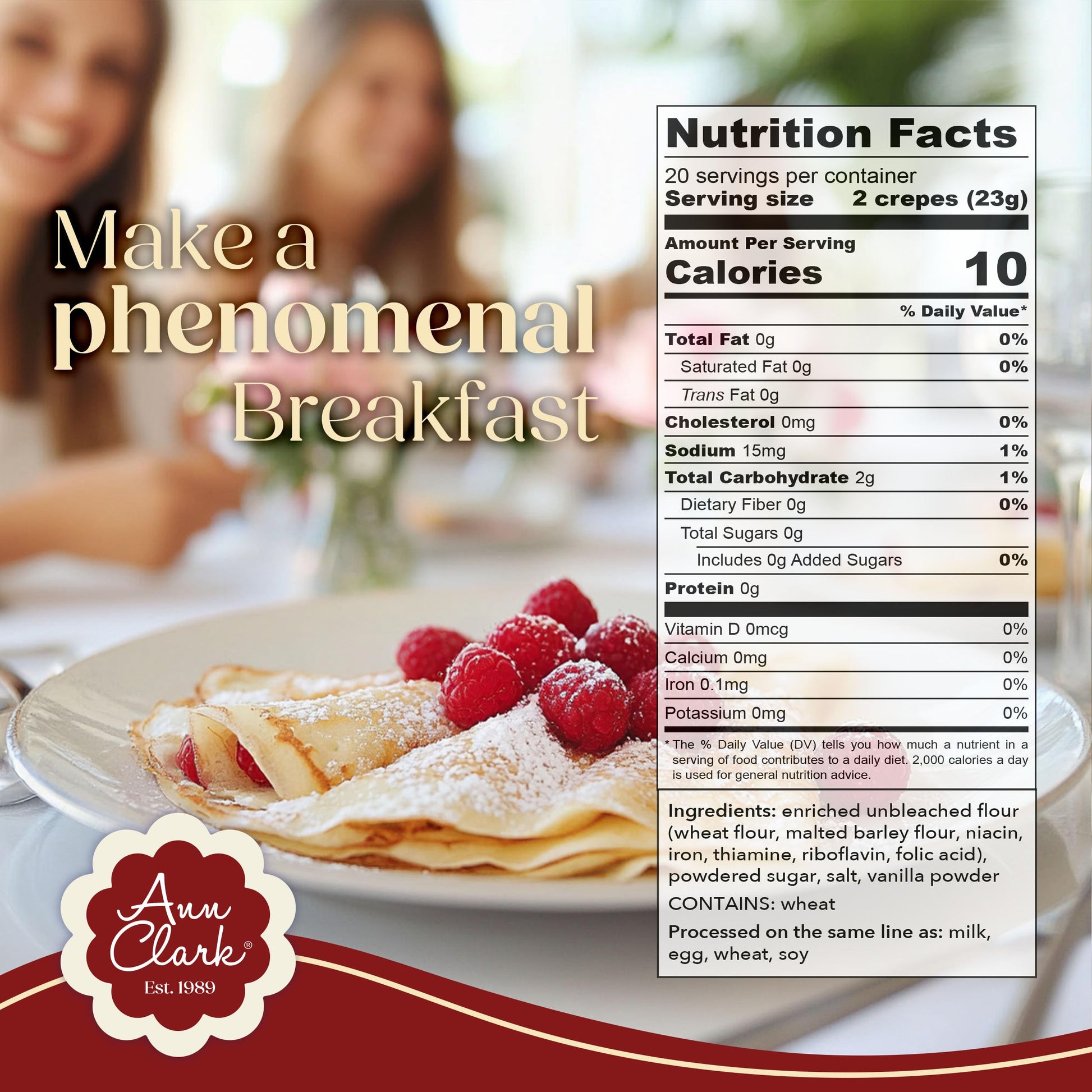 - Q: Is Ann Clark Crepe Mix suitable for gluten-free diets? A: Ann Clark Traditional French Crêpe Mix contains premium unbleached flour and is not gluten-free. For those with gluten sensitivities or celiac disease, it's best to look for a specific gluten-free crepe mix.