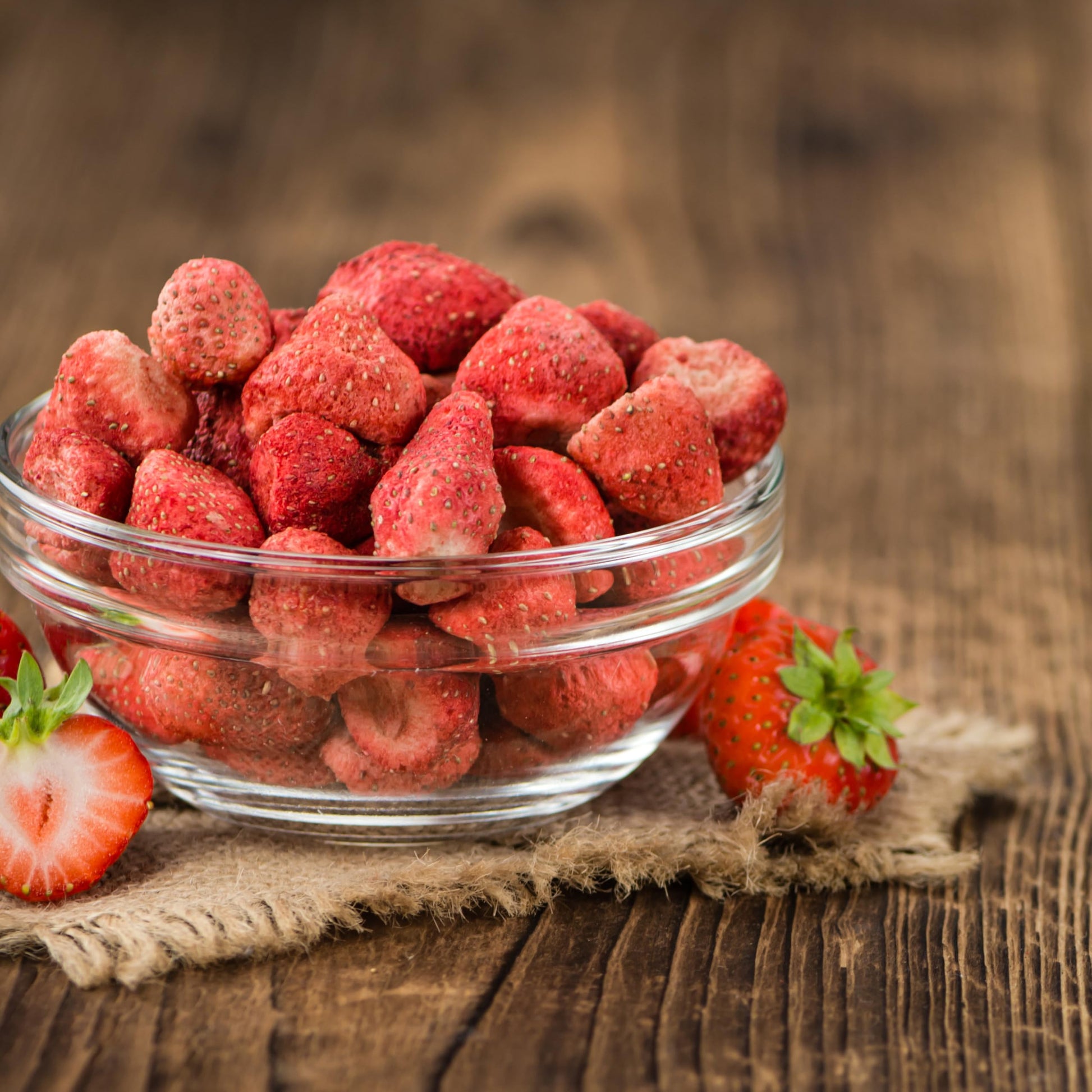 • Q: What are the health benefits of freeze-dried strawberries? A: Freeze-dried strawberries are low in calories and high in nutrients, making them an excellent choice for healthy snacking. They retain most of the vitamins and minerals found in fresh strawberries, providing antioxidants and dietary fiber without added sugar or preservatives.
