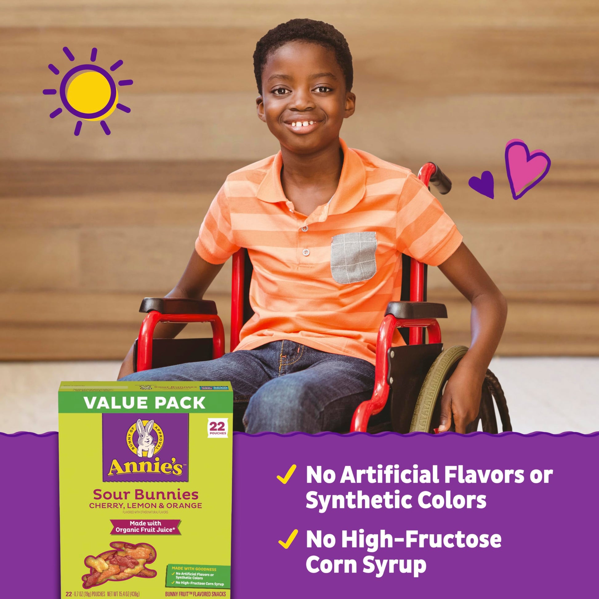 Every Pouch Of Annies Sour Bunnies Fruit Flavored Snacks Brings You An Irresistible Sweet & Sour Mix Of Cherry, Lemon, And Orange Flavored Bunnies. These Snackable, Lunch Packable Bunny-Shaped Gummies Are Vegan, Gelatin Free, And Gluten Free. Theyre Made With Organic Fruit Juice*, No Artificial Flavors Or Synthetic Colors, And No High-Fructose Corn Syrup - Just Yummy Bites Bursting With Sweet N Sour Fun That Provide The Right Amount Of Pucker-Y Punch. The Convenient Snack Pouches Make It Easy To Share The Yummy Goodness With Everbunny. A Perfect Fruit Flavored Snack For The Pantry, School Snack Tote, And On The Go. Make Them Your Favorite After School Nibble. Hand Them Out As Team Treats. However You Enjoy Them, Annies Helps Make Life A Little Easier And More Delicious By Spreading Goodness Through Tasty Foods And Kindness To The Planet. *These Fruit Flavored Snacks Are Made With Organic Pear Juice Concentrate. See Nutrition Panel For A Complete List Of Ingredients. They Are Not Intended To Replace Fruit Or Vegetables In The Diet.