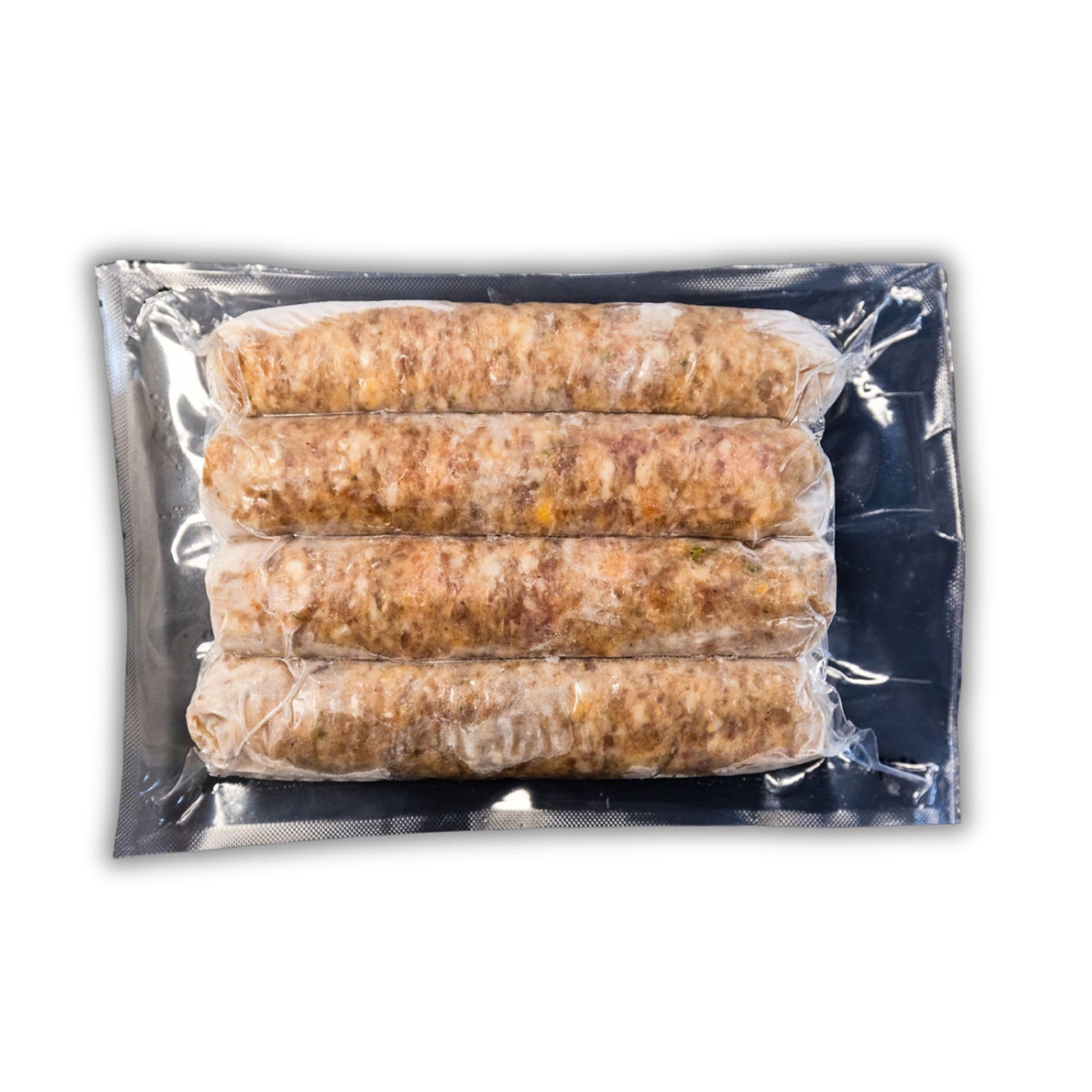 Q: What are the main flavors in Bearded Butchers Jalapeño & Cheddar Bratwurst?A: The Bearded Butchers Jalapeño & Cheddar Bratwurst features a delicious combination of spicy jalapeño heat and creamy cheddar cheese, providing a bold and flavorful taste that appeals to spice lovers and cheese enthusiasts alike.