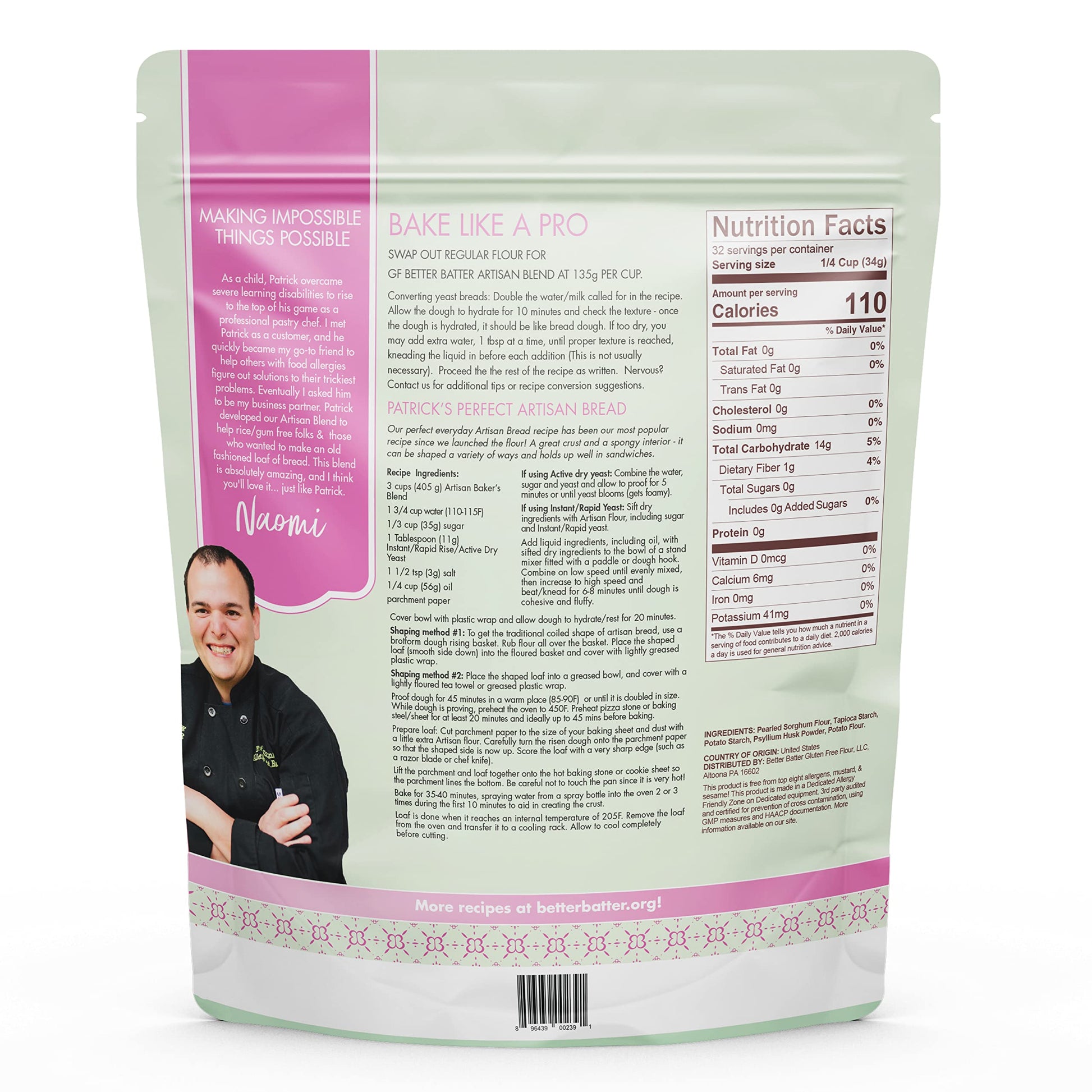 Better Batter Artisan Multipurpose Flour Blend, Certified Gluten-Free, Non-Gmo, Vegan Friendly, Kosher, Top 10 Allergen Free, Cup For Cup Baking Alternative To Regular Flour, Celiac Friendly, 2.5Lb