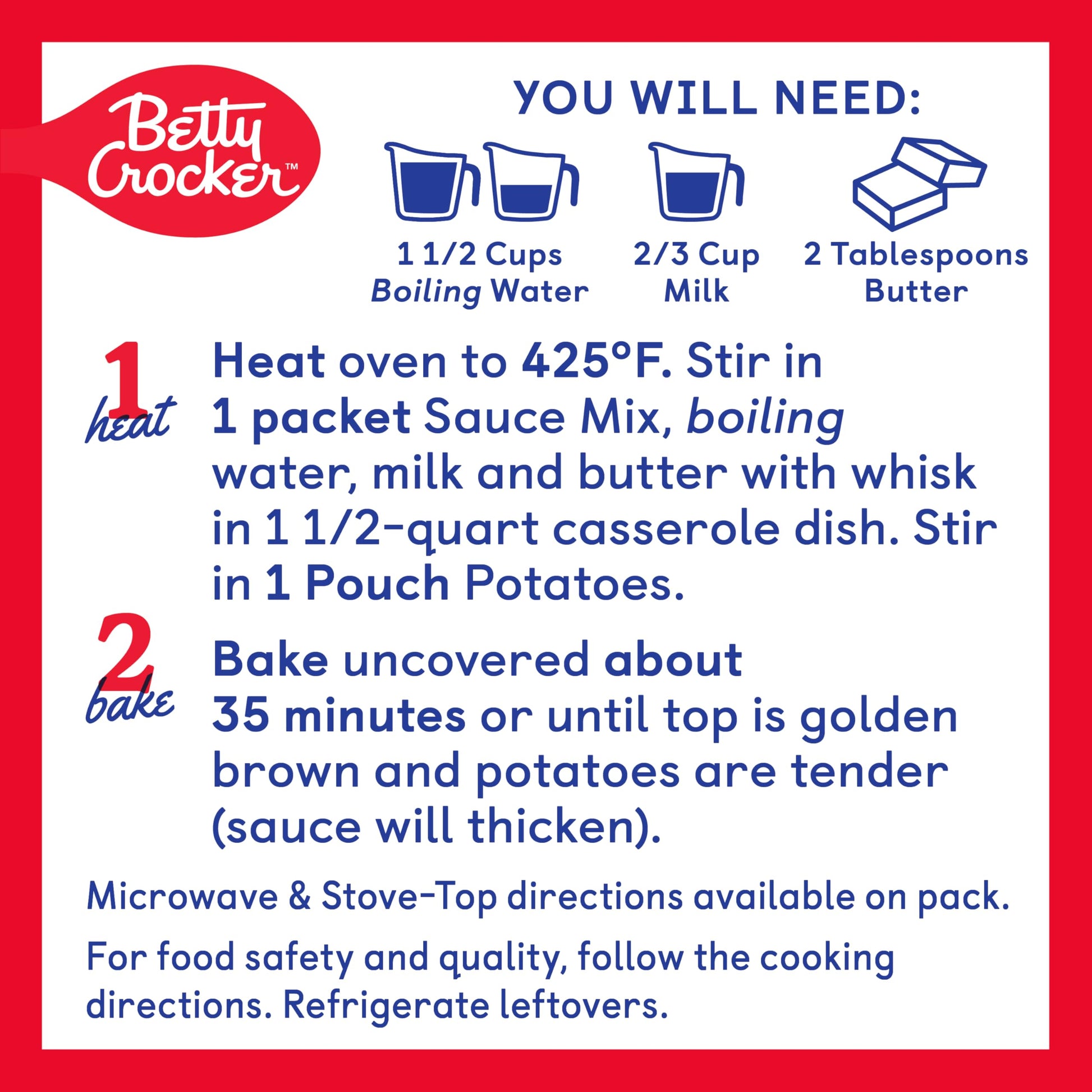 A Favorite For Generations, Betty Crocker Makes It Easy To Bring This Classic Combination Of Real Cheese And Sliced Potatoes To Your Family Table. These Perfectly Seasoned Potatoes Cooked In A Rich, Creamy Cheese Sauce Create An Ideal Side Dish For Family Meals. They'Re Easy To Prepare By Adding Water, Milk, And Butter And Following The Simple Steps On The Package. With About Eight Servings In This 8-Ounce Twin Pack, Keep Betty Crocker Au Gratin Casserole Potatoes On Hand As A Convenient Part Of A Weeknight Dinner Or Your Sunday Brunch Spread. Or Stock Up And Serve Betty Crocker Potatoes At Your Next Party Or Event. Hungry For More Ways To Do Meal Prep Using Our Potatoes Look To Betty Crocker Recipes For Tasty Inspiration. For More Than A Century, Betty Crocker Has Been Bringing Families Easy, Delicious Recipes. The Betty Crocker Kitchen Is Still Providing Convenient, Tasty Dessert Mixes, Frostings, And Convenient Meal Options And Side Dishes.