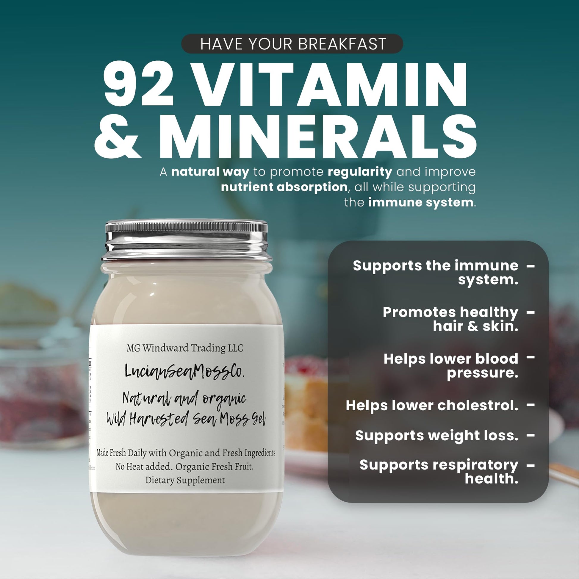 - Q: What are the health benefits of Black Seed Infused Organic Sea Moss Gel? A: Black Seed Infused Organic Sea Moss Gel is rich in over 92 vitamins and minerals, promoting immune support, digestive health, and overall well-being. It may aid in nutrient absorption, improve gut health, and support healthy skin, hair, and nails.