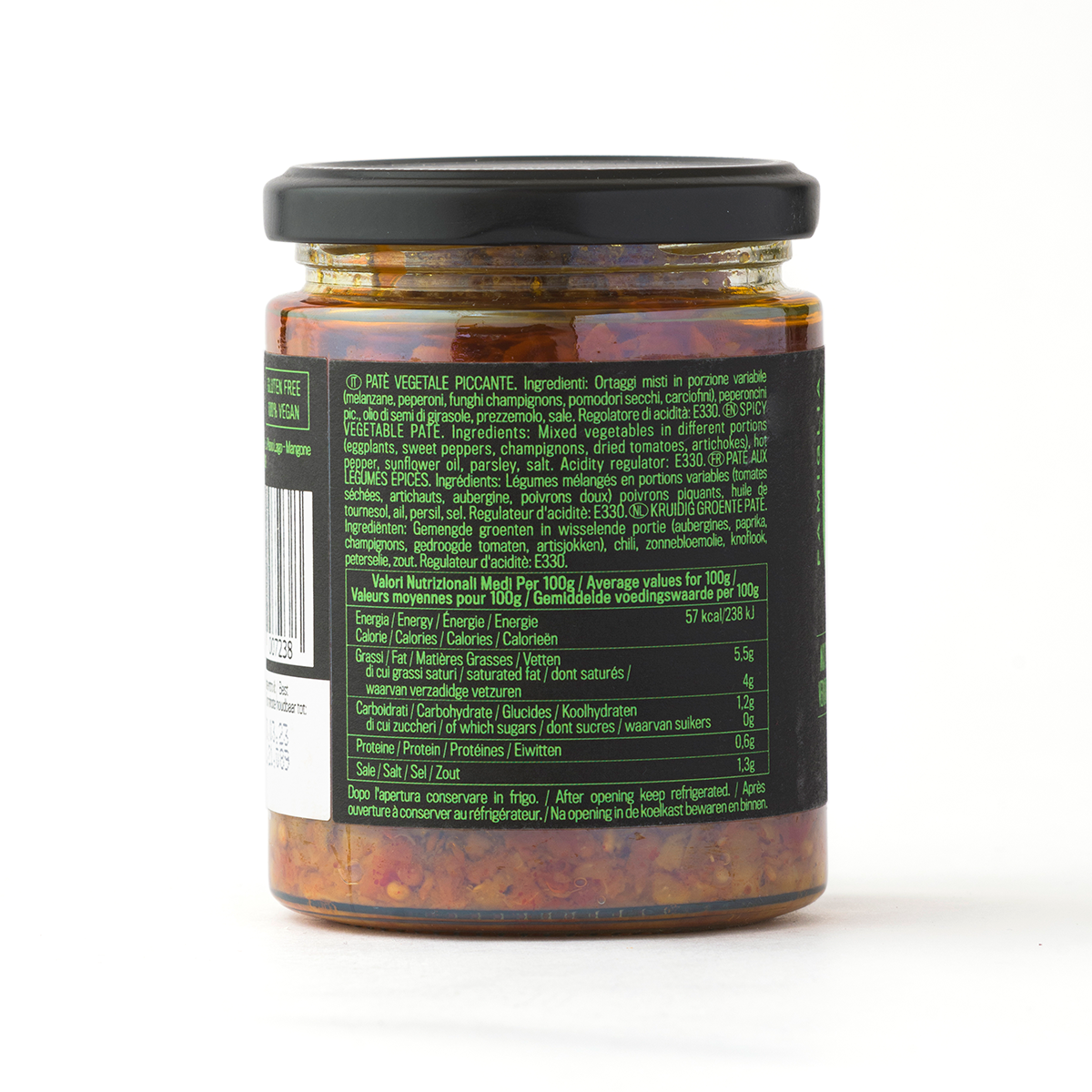 The unmistakable Calabrian peperoncino piccante gives this bruschetta its signature “arrabbiata” (angry/spicy) kick, balanced with aromatic parsley and smooth vegetable oils. Produced entirely in Calabria, Italy, this spread is free from preservatives, artificial colorings, and acidity correctors — a true clean-label specialty rooted in regional culinary tradition.
