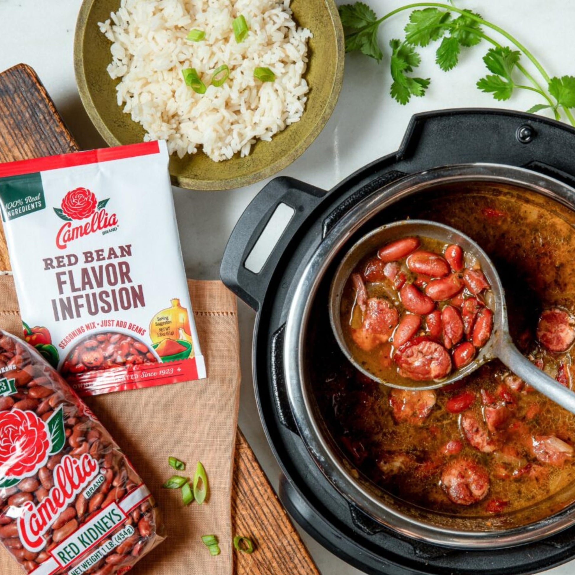 - Q: What is Camellia Brand Red Bean Flavor Infusion Seasoning used for? A: Camellia Brand Red Bean Flavor Infusion Seasoning is designed to enhance the flavor of beans, particularly red kidney beans. Simply add the seasoning to your beans while simmering to achieve a rich, authentic New Orleans flavor in your dishes.