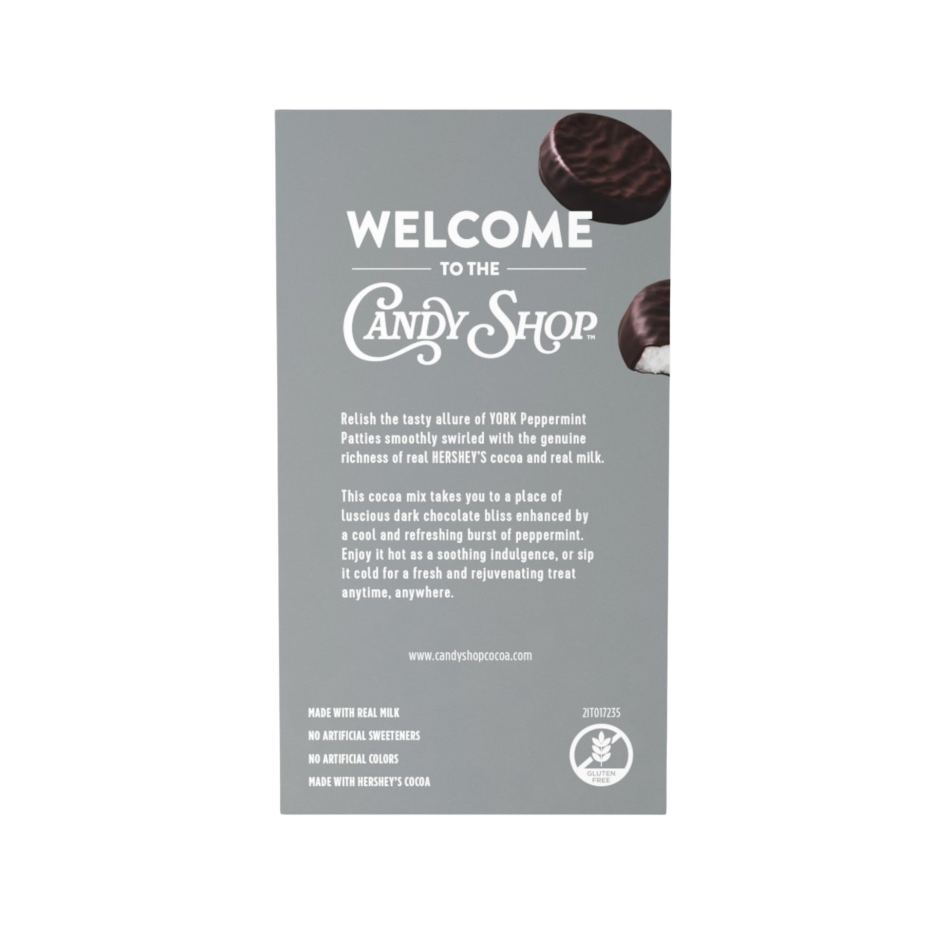 Welcome To The Candy Shop. Relish The Tasty Allure Of York Peppermint Patties Smoothly Swirled With The Genuine Richness Of Real Hersheys Cocoa And Real Milk. This Cocoa Mix Takes You To A Place Of Luscious Dark Chocolate Bliss Enhanced By A Cool And Refreshing Burst Of Peppermint. Enjoy It Hot As A Cozy Treat On Chilly Days Or Cold Over Ice For A Refreshing Chocolate-Mint Indulgence.