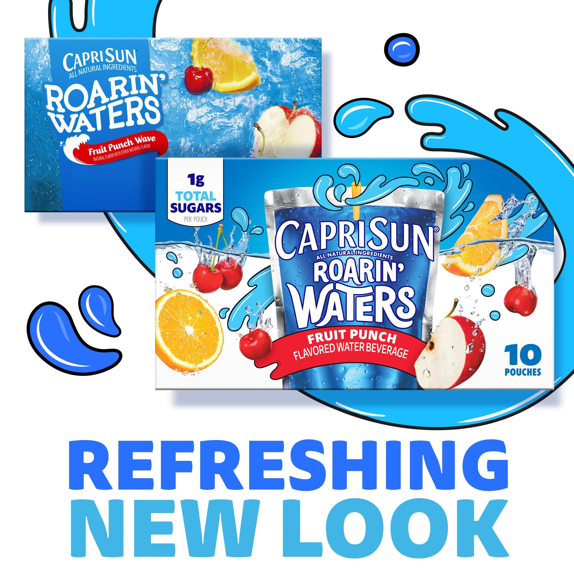 Q: How much sugar is in each pouch of Capri Sun Roarin' Waters?A: Each 6 fl oz pouch of Capri Sun Roarin' Waters Fruit Punch contains only 1 gram of sugar, making it a great hydrating option for kids without excessive sweetness.