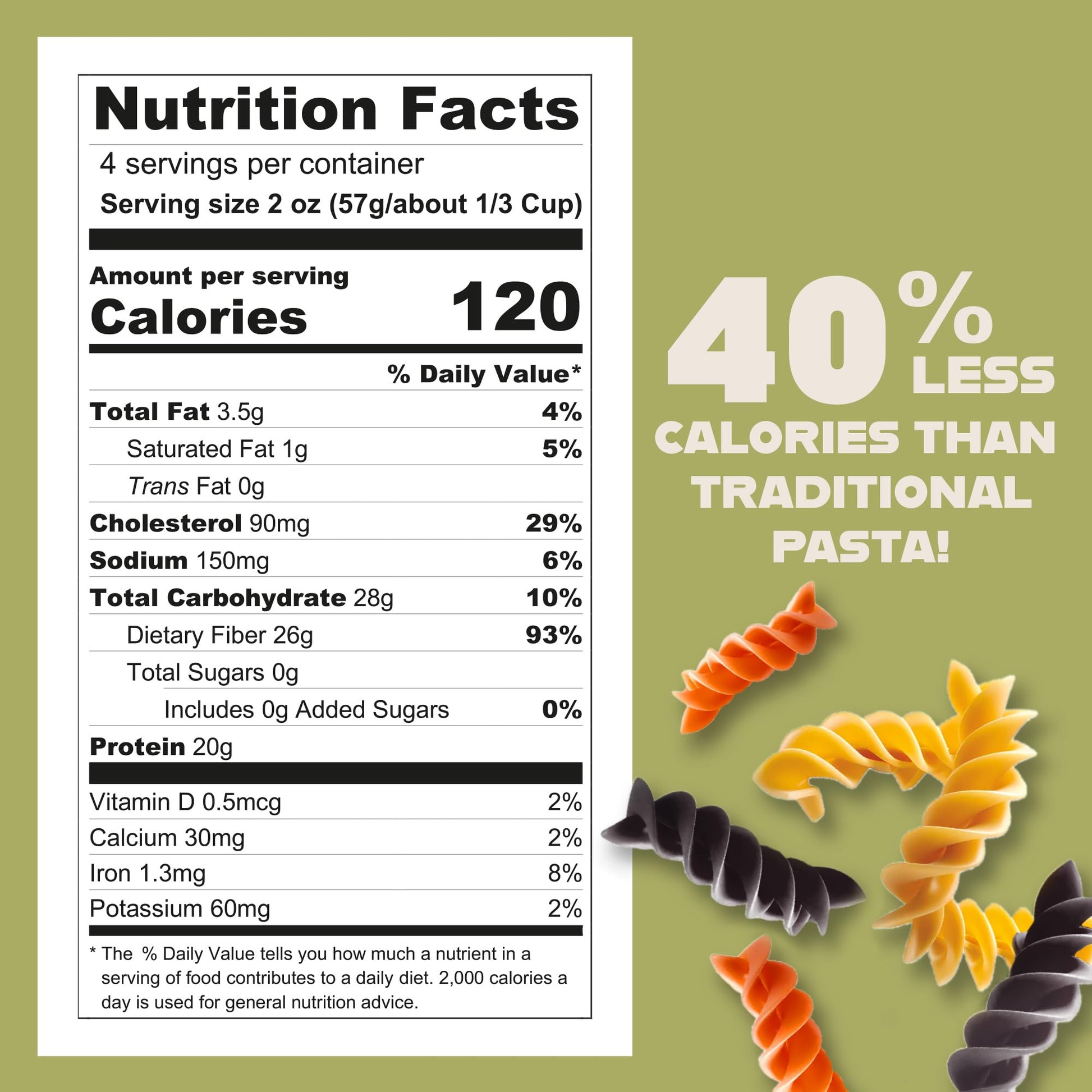 - Q: What are the nutritional benefits of Care Free Kitchen Rotini Keto Pasta? A: Care Free Kitchen Rotini Keto Pasta offers 20g of high-quality protein per serving, only 2g of net carbs, and an impressive 26g of dietary fiber. This makes it an excellent choice for those following a keto or low-carb diet while ensuring you feel satisfied and energized.