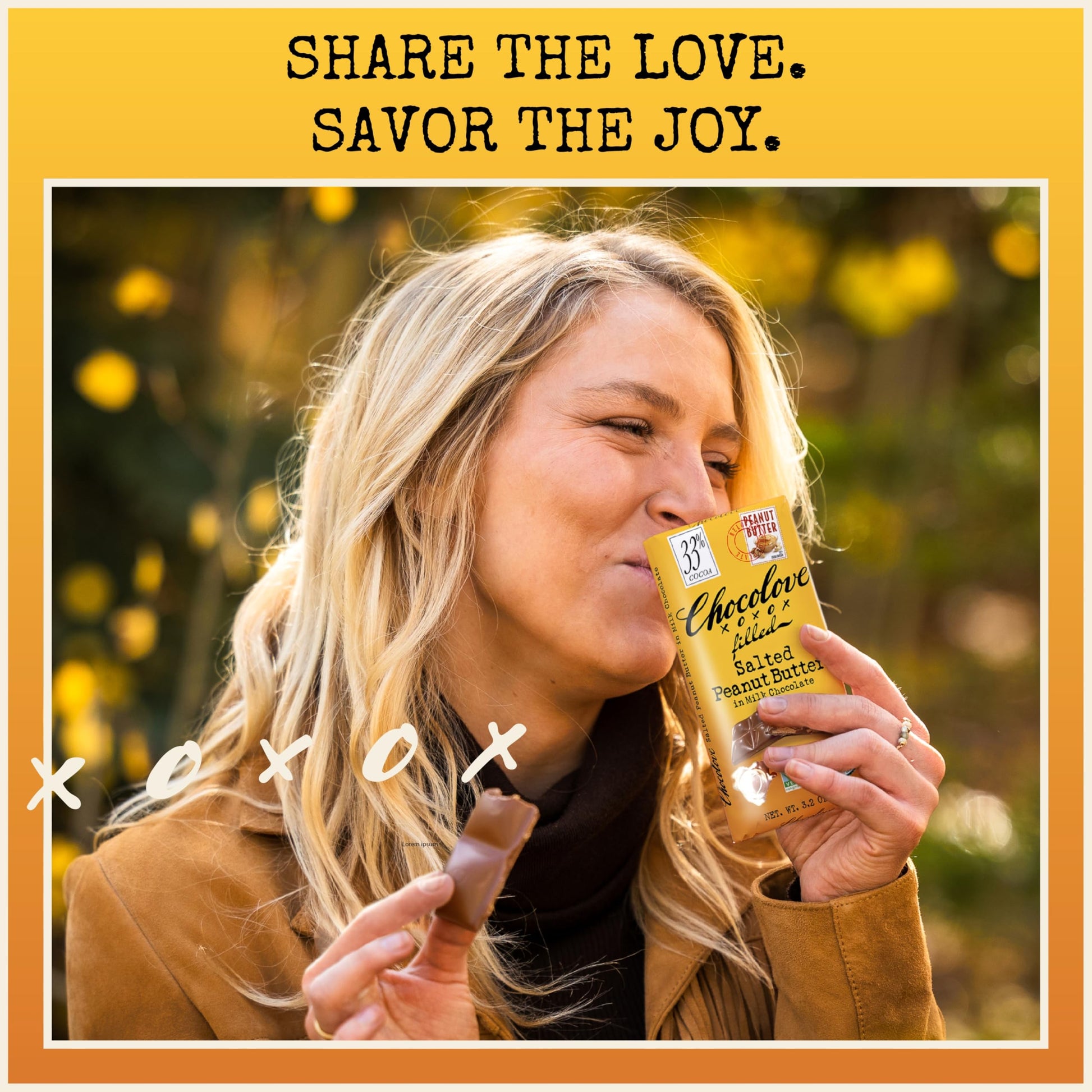 - Q: What ingredients are in Chocolove Filled Salted Peanut Butter Milk Chocolate Bars? A: Chocolove Filled Salted Peanut Butter Milk Chocolate Bars are made with high-quality milk chocolate, salted peanut butter, and contain 33% cocoa. They are crafted with silky Belgian chocolate and are Non-GMO and Rainforest Alliance Certified.