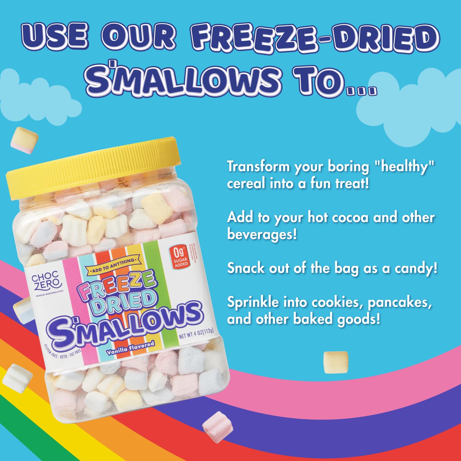 ChocZero Freeze Dried Marshmallow Bits - Zero Sugar Marshmallows - Keto, Fun Shapes, Baking, Ice Cream and Cereal Topping - 4 Ou