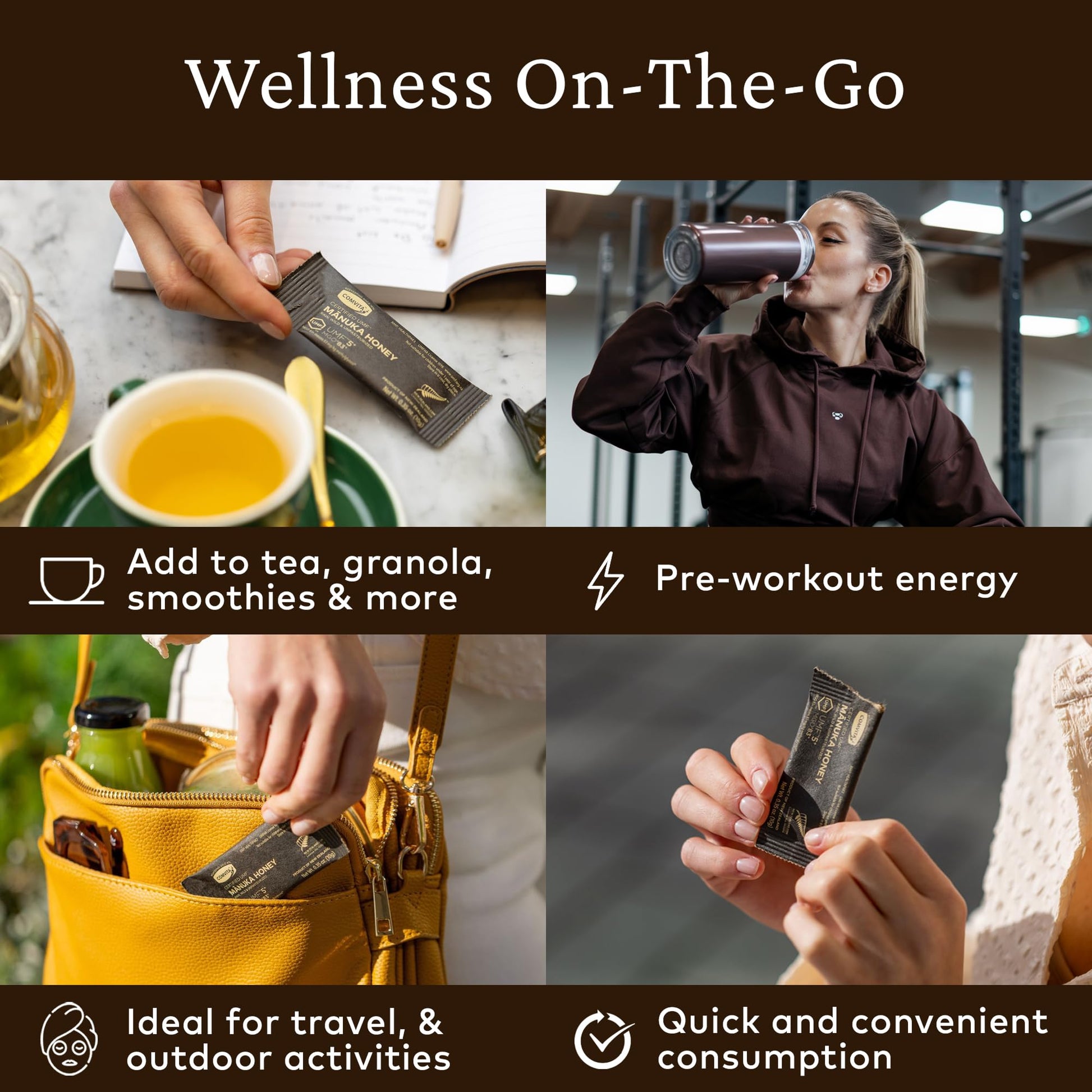 - Q: How should I use the single-serve packets of Manuka Honey? A: The single-serve packets are convenient for on-the-go use. You can add them to tea, oatmeal, smoothies, or consume them directly for a quick energy boost during workouts or outdoor activities.
