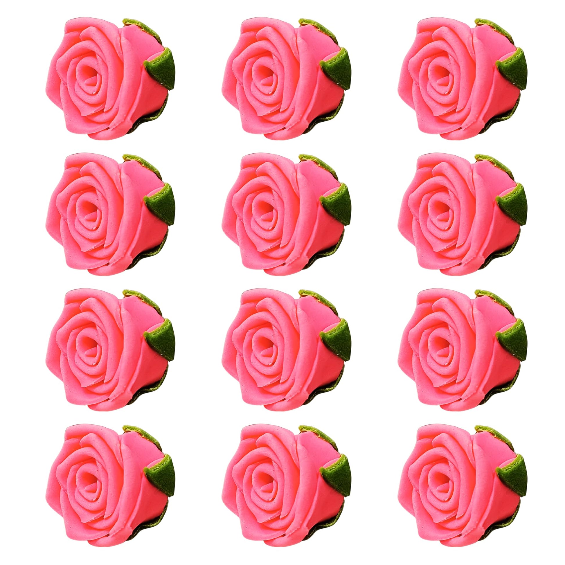 Q: What is the size of each edible rose in the pack?A: Each edible rose measures approximately 1.5 inches in size and weighs 0.77 ounces, making them the perfect size for cake and cupcake decoration.