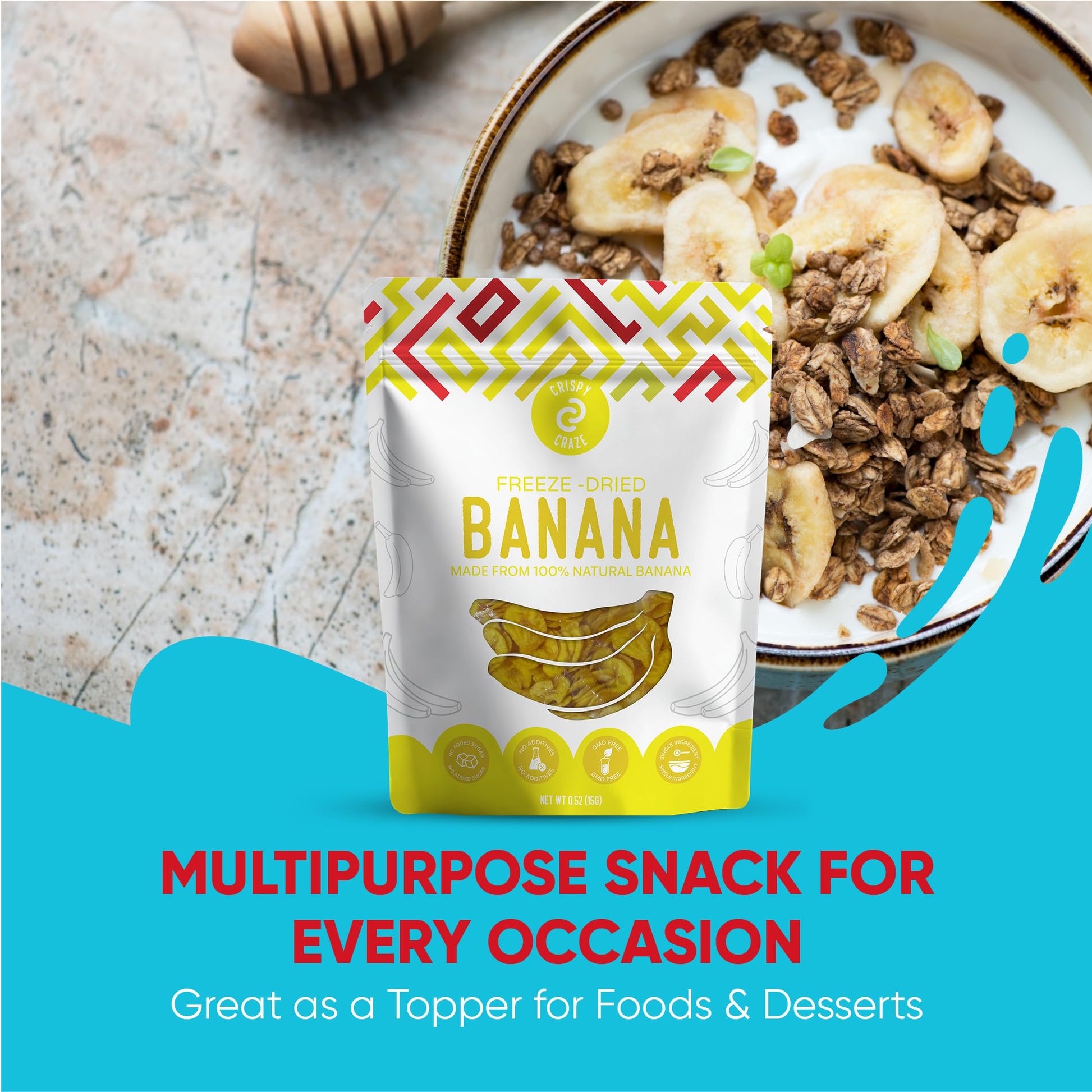 - Q: Can I take Crispy Craze Freeze Dried Bananas on outdoor trips? A: Absolutely! The 0.52 oz pouches of Crispy Craze Freeze Dried Bananas are lightweight and portable, making them an excellent snack for camping, hiking, or any outdoor activities where you need a healthy, convenient option.