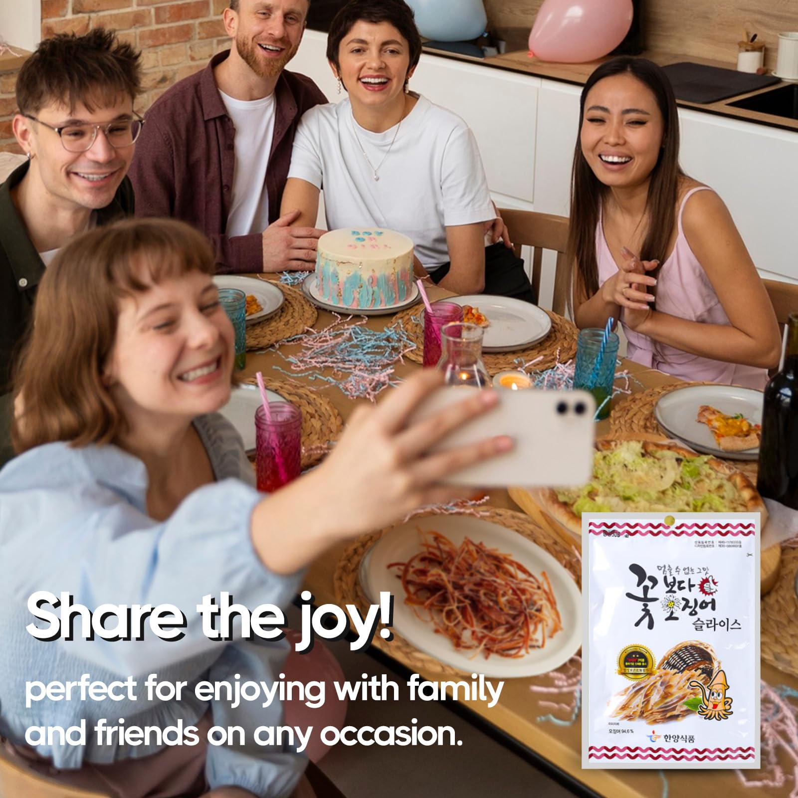 Discover ''Over Flower Squid'' A Seasoned Dried Fish Snack With A Savory Taste And Chewy Texture That Will Keep You Coming Back For More. Seasoned With Sun-Dried Salt And Pomegranate Juice, It Offers A Perfect Balance Of Sweet And Savory Flavors. The Long Slice Shape Makes It Easy To Enjoy One At A Time, Making It A Great Snack For When You'Re Craving Something Tasty. Whether As A Family-Friendly Snack Or A Simple Side Dish To Pair With Your Drinks, It'S The Ideal Choice For Any Occasion. Enjoy It With Ease! (Product Of Korea)