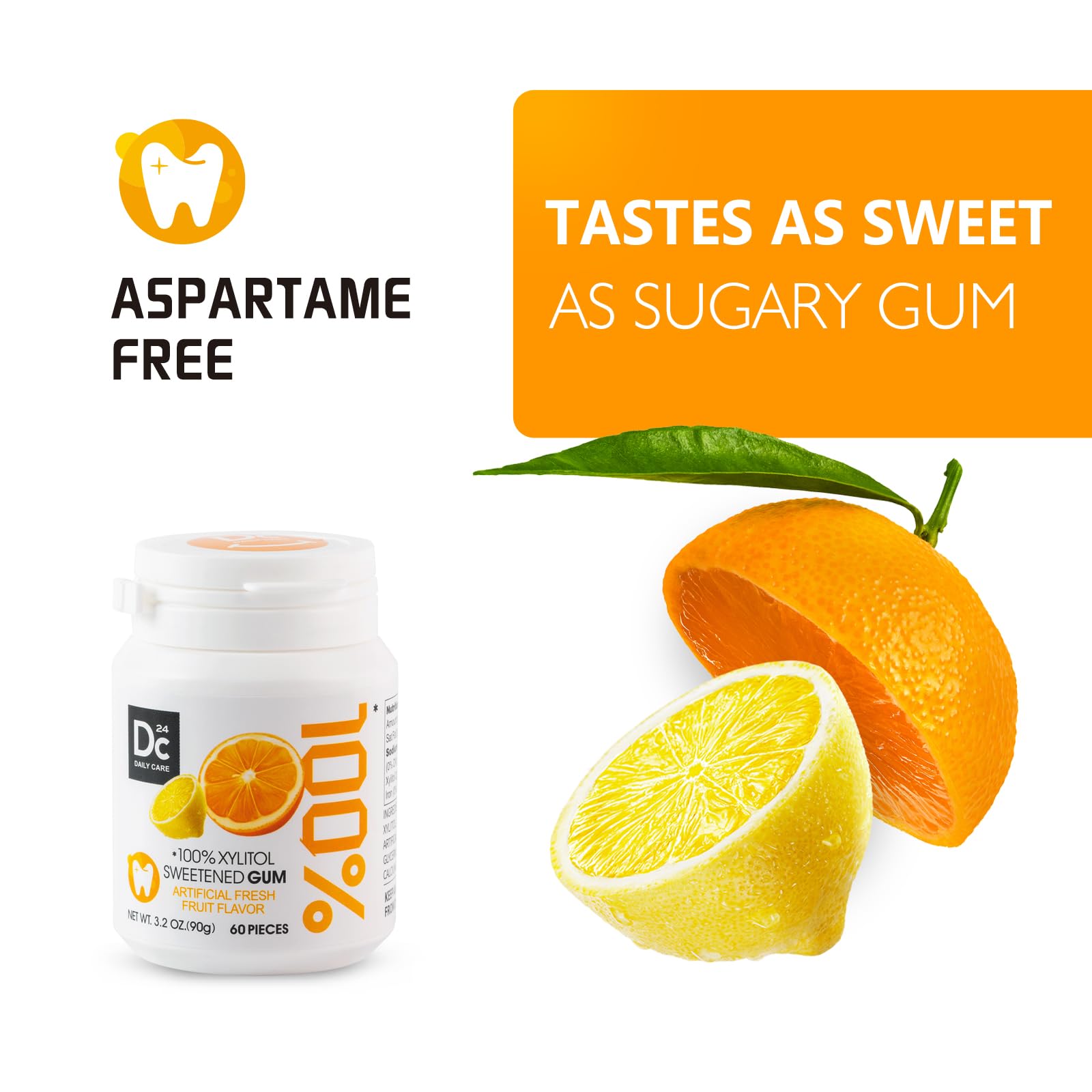 Q: What are the main ingredients in DC24 DAILY CARE Xylitol Chewing Gum?A: DC24 DAILY CARE Xylitol Chewing Gum is primarily sweetened with 100% non-GMO xylitol and contains no aspartame or artificial sweeteners, making it a healthier choice for gum lovers.