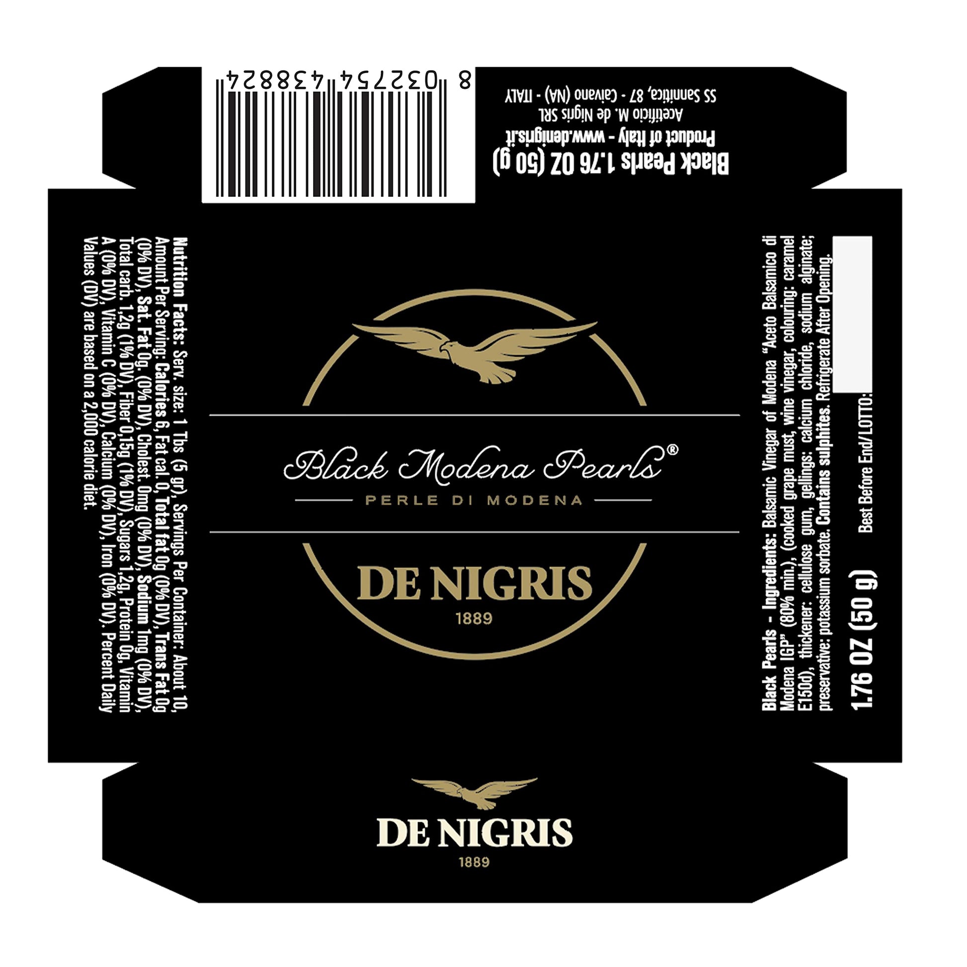 - Q: What are De Nigris Black Modena Pearls and how do I use them? A: De Nigris Black Modena Pearls are gourmet pearls filled with balsamic vinegar, bursting with incredible flavors when bitten. They can be used as a unique condiment to elevate salads, meats, cheeses, and desserts, enhancing the overall dining experience.
