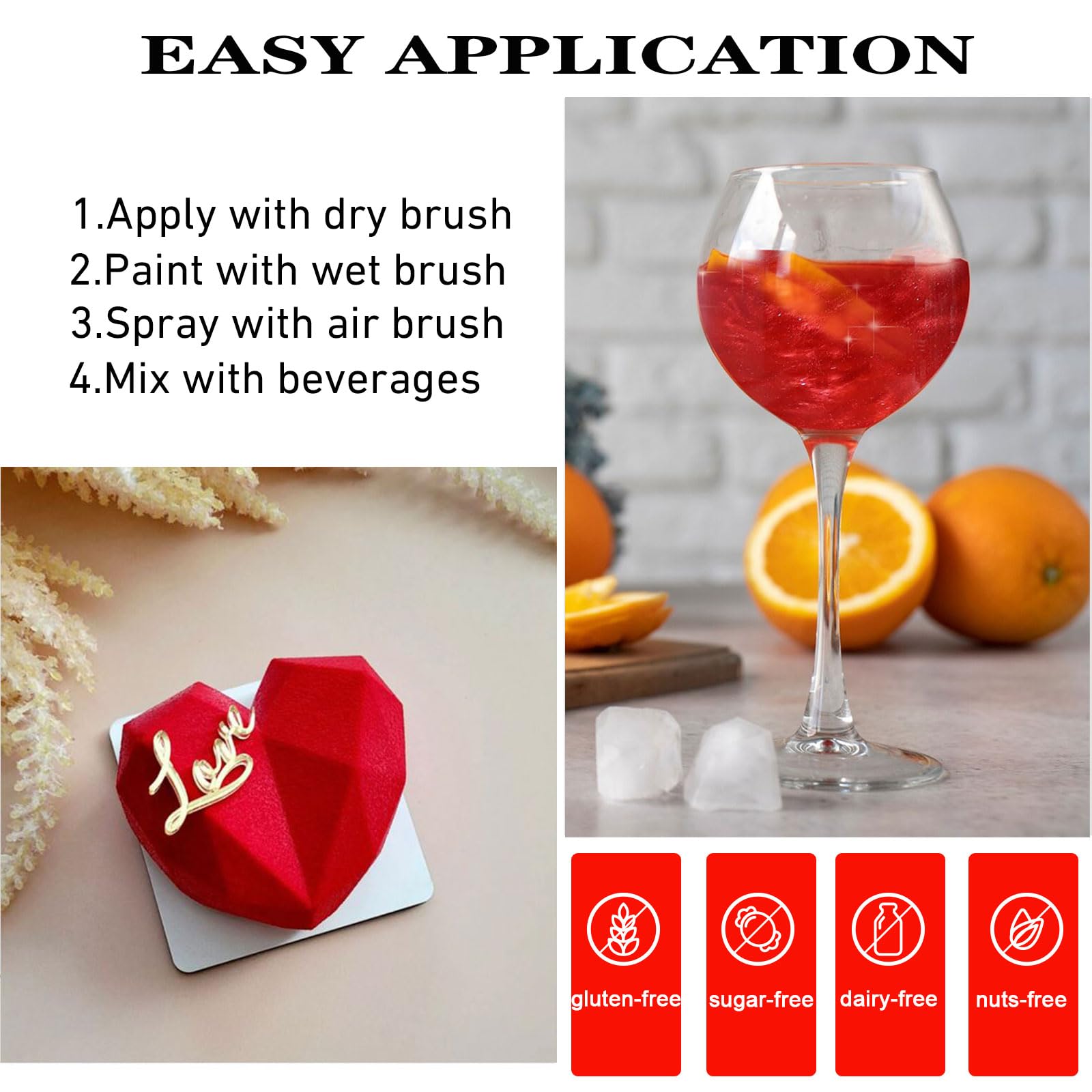 10 Colors Vibrant Metallic Shades Luster Dust Available - Includes: Gold, Rose Gold, Red, Light Pink, Violet, Silver, Green, Bronze, Burgundy, Orange Edible Luster Dust. Food Glitter Edible Luster Dust Products Make Your Gorgeous Creations With Shinny Shade! | Chosen Premium Safe Flavorless Ingrdients - This 100% Safe Green Edible Glitter For St. Patrick'S Day Decorations, Cakes, Strawberries, Desserts & Drinks Is Gluten-Free, Dairy-Free, Vegan, Kosher, No Allergens And Kid-Friendly. 100% Food-Safe, Edible Sprinkles For Dessert & Drink Glitter Edible Dust Is Truly Flavorless, You Can Add Stunning Shimmer & Shine To Your Creations Without The Weird Aftertaste. | Easy To Use - Along To Use Or Mix And Match To Create Your Own Unique Metallic Colors! This Edible Glitter Dust For Cakes And Drinks Is Simply To Apply. Rose Gold Edible Luster Dust Is Formulated To Be Hyper-Pearlescent, For A Luminous, Spectacular Sparkle That Takes Your Desserts, Cakes, Chocolates And Cocktails To More Vibrant. | Used By Professionals & Beginner Friendly - A Top Choice Of Professional Bakers And Home Chefs Alike, This Food Grade Glitter Dust Is Ideal For Decorating Cakes, Cupcakes, Cookies, Chocolates, Cocktail Glitter For Drinks, And Desserts. Add A Pop Of Shimmer To Chocolate- Covered Strawberries, Give Your Champagne Toast A Little Extra Sparkle, And Make Magical With Your Kids! | Top Rated Service Support Online - Any Doubts Or Concerns About Our Orange Edible Glitter Luster Dust Edible Set, Welcome To Contact Us, Our Service Team Will Support You Asap Because We Are Focused On The Best Quality Products And Perfect After-Sales Service