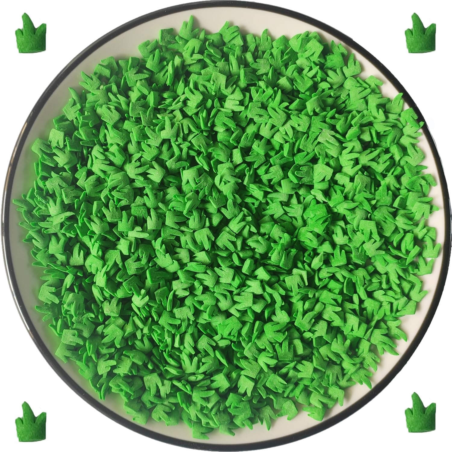 Q: What are Edible Sugar Green Grass Sprinkles used for?A: Edible Sugar Green Grass Sprinkles are perfect for decorating cakes, cupcakes, cookies, and other sweet treats. They add a festive touch to various occasions like St. Patrick's Day, birthdays, and parties.