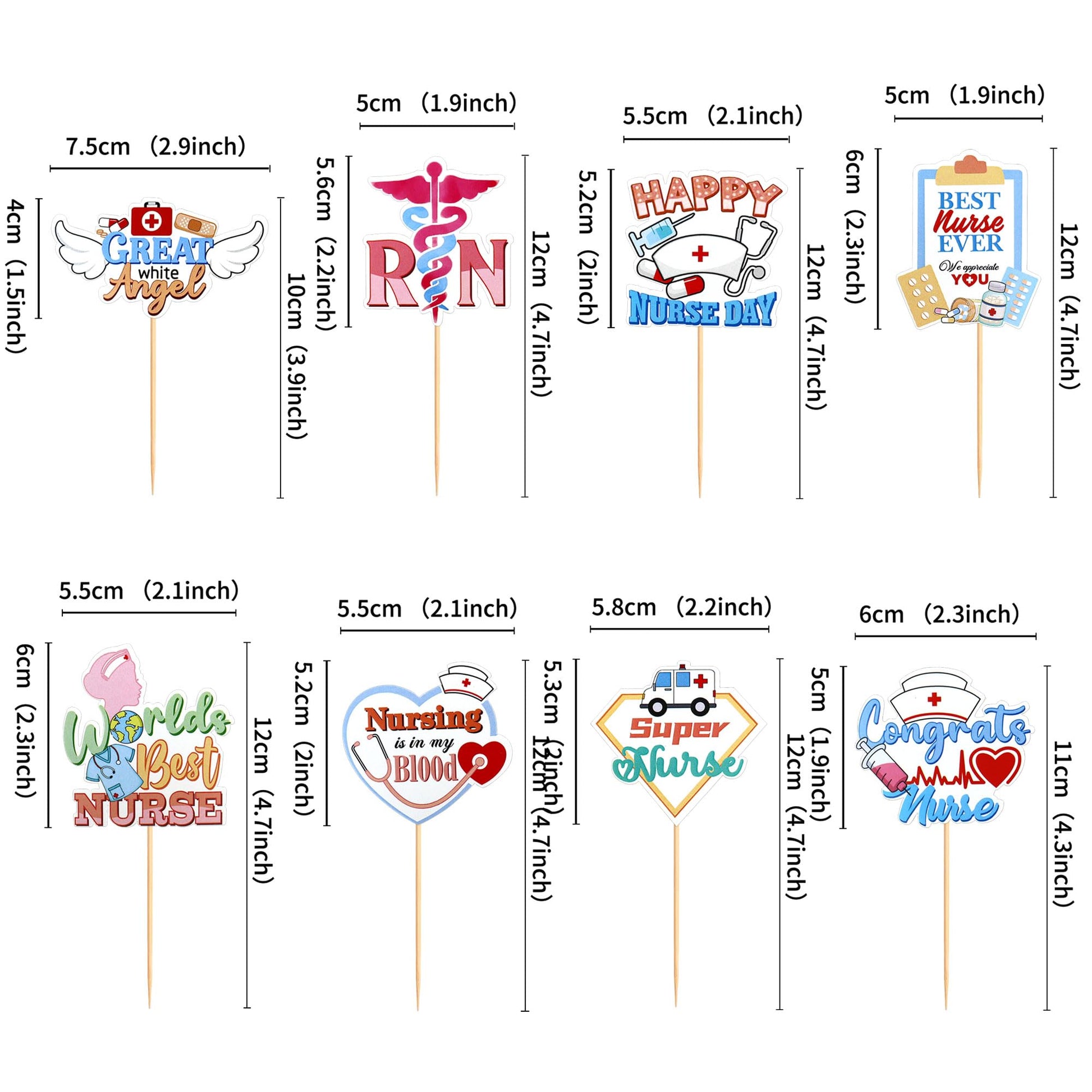 Ercadio 32Pcs Nurse Cupcake Toppers Nursing School Graduation Cupcake Picks For Medical Rn Nurse Themed Birthday Party Cake Decorations Supplies Features - Material: 300G Glitter Card-Stock And Toothpicks Stick,Non-Toxic,Eco-Friendly, Biodegradable. - Package: Pack Of 12 Pcs, Handmade And Pre-Assembled. - Size: 2*4.1 Inch / 1.6*3.8 Inch / 2.6*3.9 Inch(Including Stick) - Perfect For Little Boys Prince Themed Birthday Party, Crown Theme Gender Reveal Party,Crown Theme Celebration Party,Boys Or Girls First Birthday Party, Wedding Or Anniversary Party. - Great Accessory For Cupcakes,Cakes,Ice Cream,Fruit,Dessert,Cheese,And Any Food You Want To Dress Up. - 100% Satisfaction Gurantee-We Value Every Customer'S Shopping Experience And 100% Support Customer Refunds When Unsatisfied.No-Risk For All Our Customers. - Friendly Reminder:Designed For Single-Sided,Another Side Is Plain White. If You Have Any Problems,Please Contact Us, We Will Try Our Best To Solve Your Problem Within 24 Hours. Note: 1. Return Policy: You Can Return The Item If Not Satisfied, But Please Kindly Contact Us First, So That We Can Deal With It Immediately Until You Are Satisfied. 2. Color Might Be Slightly Different Due To The Color Calibration Of Each Individual Monitor. 3. Please Allow The Tiny Measuring Deviation Due To Manual Measurement. 4. Thanks For Your Understanding And Enjoy Your Shopping Moment! About Ercadio The Ercadio Is The Registered Brand (Ser. No. 88-495,201),Which Is The Original Manufacturer For The Cupcake Toppers And Party Cake Decoration. We Offer The Customized Service For Many Wholesalers And Retailers. We Are Rich In Experience With Advanced Management System & Quality Control System, So We Always Offer High Quality Products To All Customers. It Is Our Final Goal To Make Your Party Happy !
