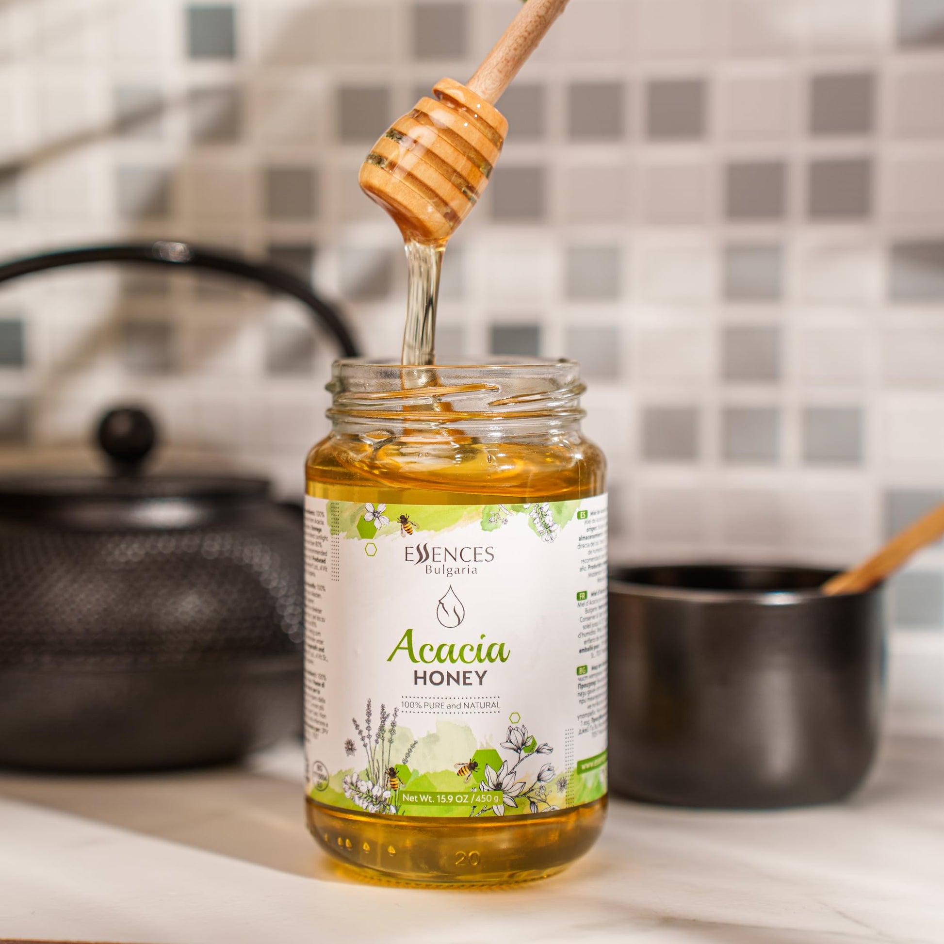 - Q: What makes Essences Bulgaria Raw Acacia Honey unique? A: Essences Bulgaria Raw Acacia Honey is unique due to its high purity and natural properties. It is 100% pure, raw, and unfiltered, meaning it retains all the beneficial enzymes, vitamins, and minerals that are often lost in processed honey. This honey is sourced from the nectar of acacia flowers, giving it a distinctively sweet flavor, making it a favorite among honey lovers.