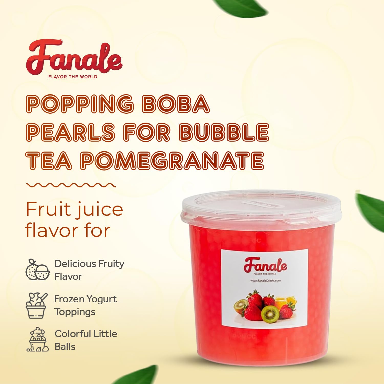 Q: What is the shelf life of Fanale Pomegranate Popping Boba pearls?A: Fanale Pomegranate Popping Boba pearls are shelf-stable, meaning they can be stored for an extended period without spoilage. Always check the packaging for specific expiration dates to ensure freshness.