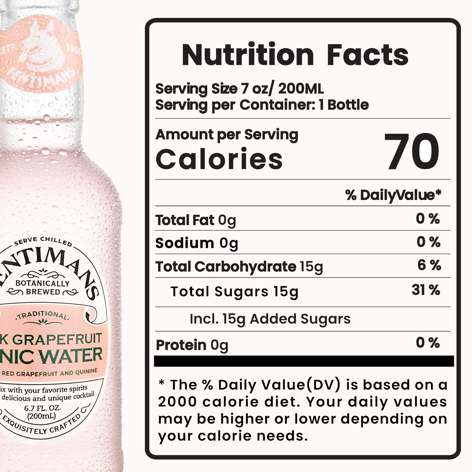 Q: What are the main ingredients in Fentimans Sparkling Pink Grapefruit Tonic Water?A: Fentimans Sparkling Pink Grapefruit Tonic Water is crafted with natural ingredients, including ruby red grapefruit and quinine. It is gluten-free and contains no artificial additives.