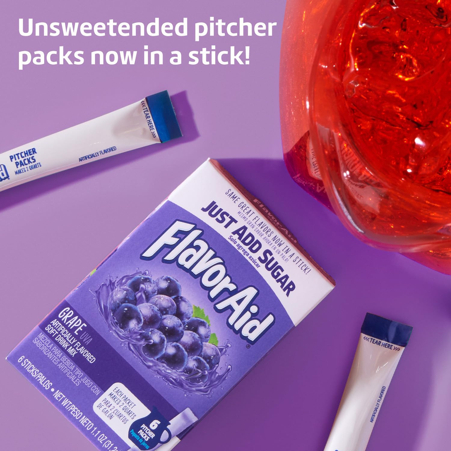 Q: Can I use the Flavor Aid Grape Drink Mix for making drinks other than a pitcher?A: Absolutely! The Flavor Aid Grape Unsweetened Drink Mix can also be used to flavor bottled water or other beverages, perfect for on-the-go hydration.