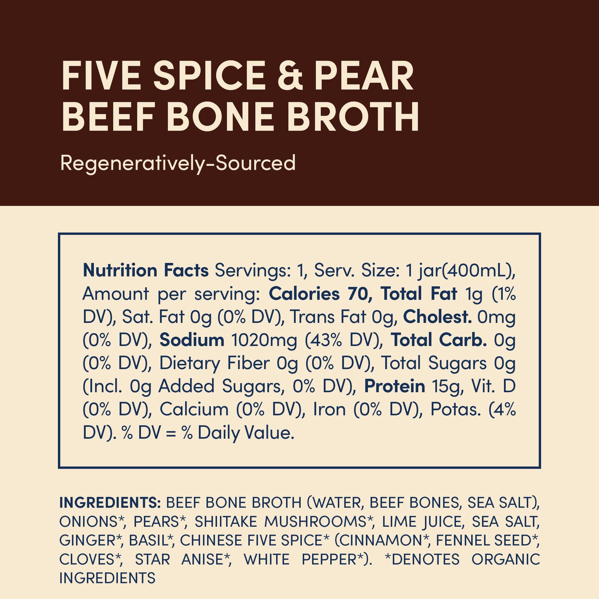 Delicious Beef Broth: 2 Jars Of Tomato & Thyme Beef Bone Broth, 1 Jar Of Ginger & Cayenne Beef Bone Broth, 1 Jar Of Five Spice & Pear Beef Bone Broth