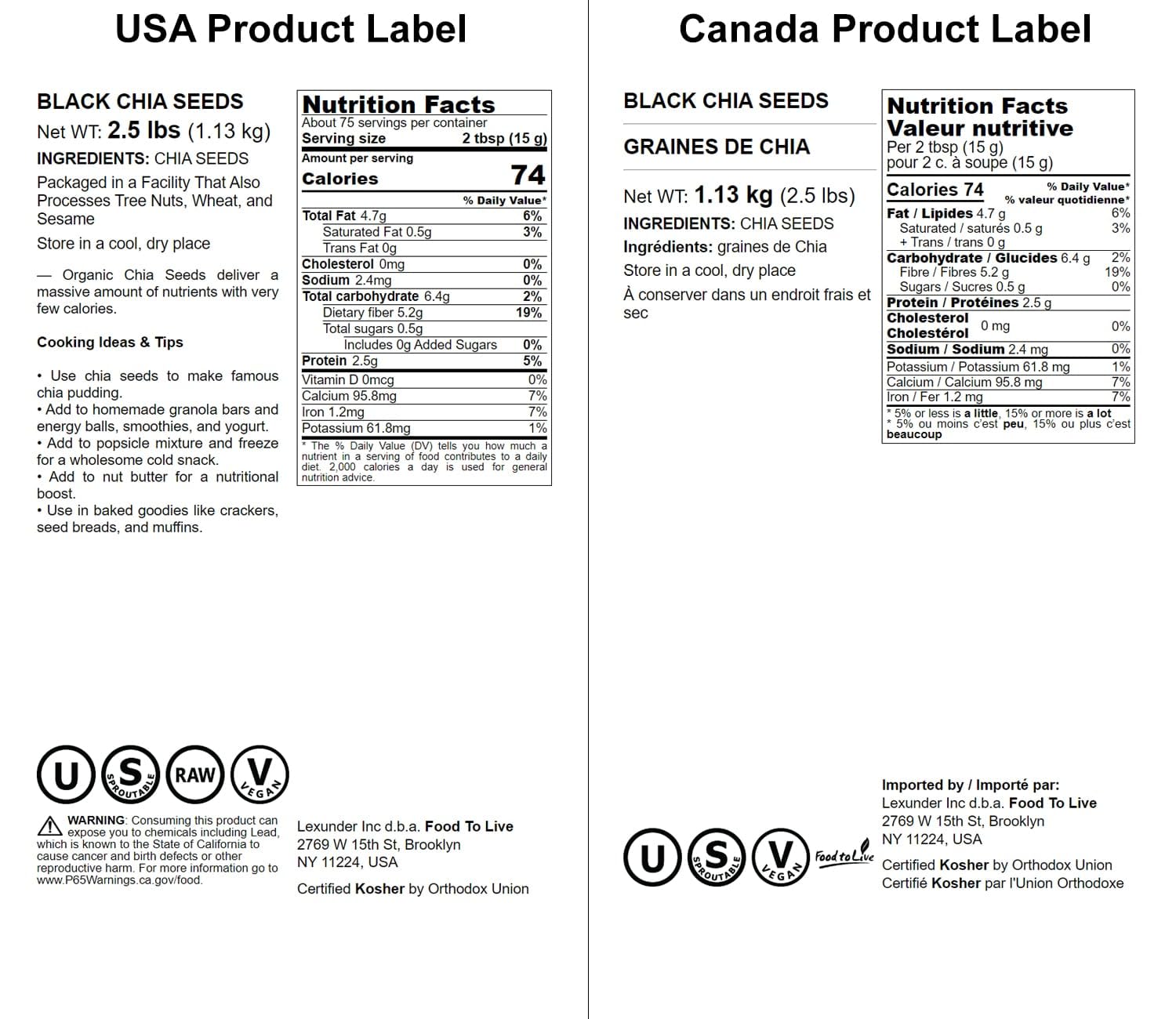 Q: Are Food to Live black chia seeds vegan and organic?A: Yes, Food to Live black chia seeds are 100% pure, natural, vegan, and kosher. They contain no artificial additives, preservatives, or chemicals, ensuring a healthy choice for any diet.