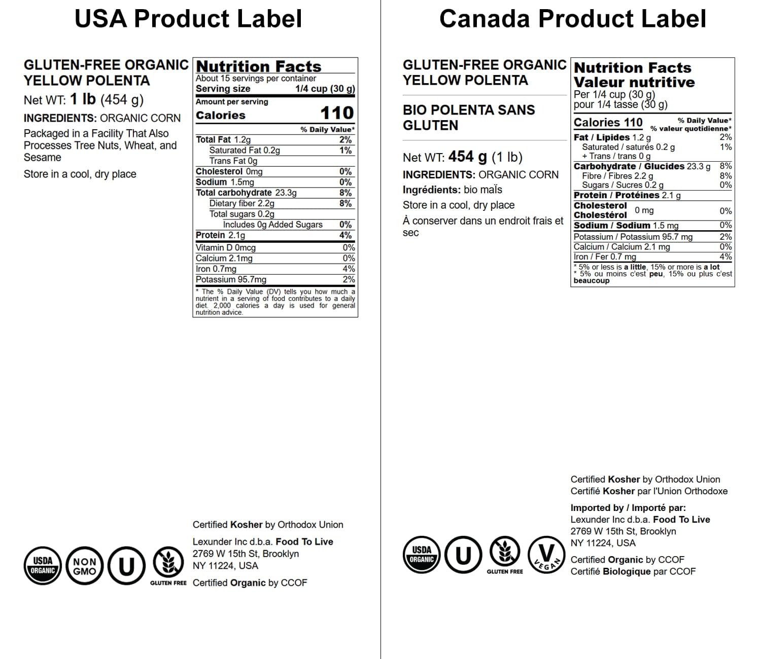 Discover The Authentic Taste Of Italy With Our Gluten-Free Organic Yellow Polenta, Made From 100% Organic, Stone-Ground Corn. This Premium Polenta Is Carefully Crafted In Italy, Where The Sun-Kissed Fields Produce Golden Corn With Exceptional Flavor. Naturally Gluten-Free, Non-Gmo, Vegan, And Kosher, Its A Versatile Ingredient For Countless Culinary Creations. Whether Youre Making A Creamy Polenta Dish, Crispy Polenta Fries, Or A Unique Crust For Pizzas And Savory Tarts, This Italian Cornmeal Delivers Perfect Texture And Taste Every Time. Its Smooth, Slightly Nutty Flavor Adds A Traditional Touch To Both Savory And Sweet Recipes. From Hearty Porridge To Baked Goods, This Polenta Is An Essential Addition To Your Pantry. Suggested Uses: Cook Into A Creamy Side Dish Or Porridge. Chill, Slice, And Bake Or Fry For Crispy Polenta Fries. Use As A Base For Gluten-Free Pizza Or Tart Crusts. Incorporate Into Batters For Cakes, Muffins, Or Cornbread. Pair With Roasted Vegetables, Stews, Or Grilled Meats For A Rustic Meal. Storage Instructions: Store In A Cool, Dry Place In An Airtight Container To Maintain Freshness. For Extended Storage, Refrigeration Or Freezing Is Recommended. Why Choose Gluten-Free Organic Yellow Polenta This Italian Stone-Ground Cornmeal Is Perfect For Anyone Who Values High-Quality, Versatile Ingredients. Whether For Everyday Meals Or Special Occasions, It Brings Authentic Flavor And Texture To Every Dish.