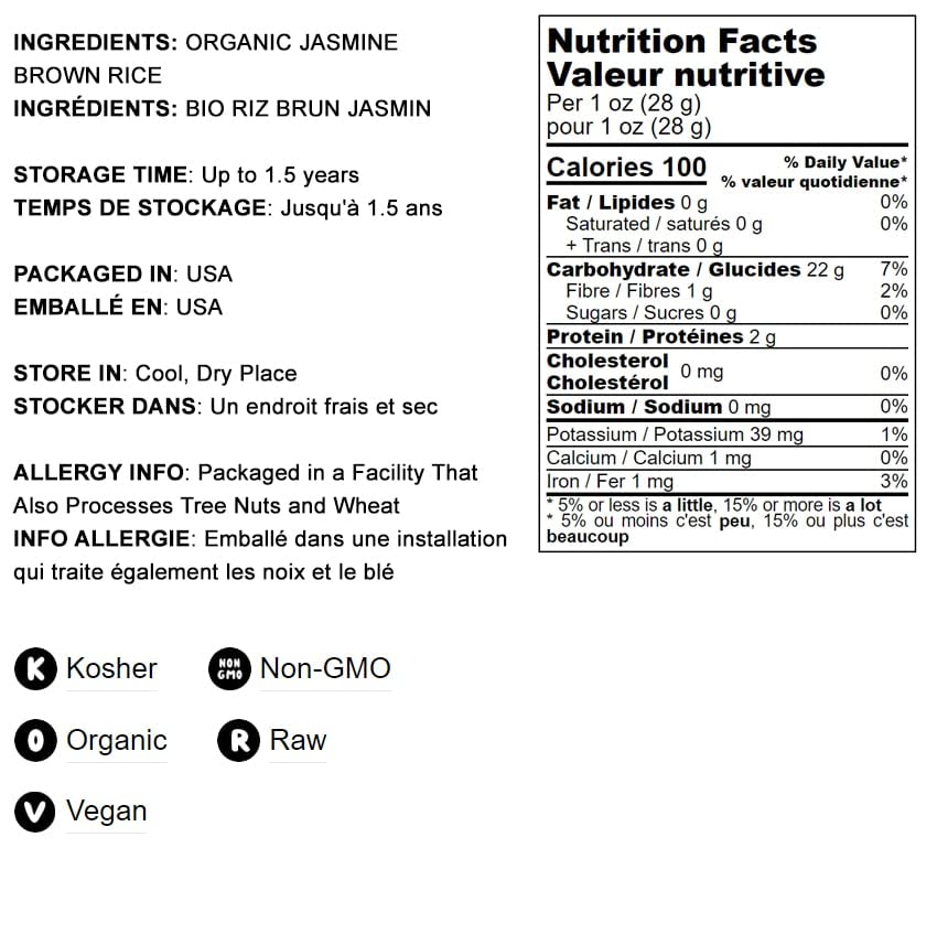 - Q: Is this product certified organic and kosher? A: Yes, Food to Live Organic Brown Jasmine Rice is certified organic, meaning it is grown without synthetic fertilizers or pesticides. It is also kosher, making it suitable for those adhering to kosher dietary laws.