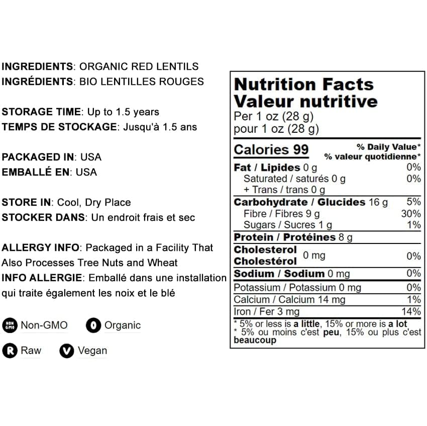 - Q: Is Food to Live Organic Red Lentil Flour suitable for gluten-free diets? A: Yes, Food to Live Organic Red Lentil Flour is gluten-free, making it suitable for gluten-sensitive individuals. However, it is important to note that it is packaged in a facility that also processes wheat, so cross-contamination is possible.