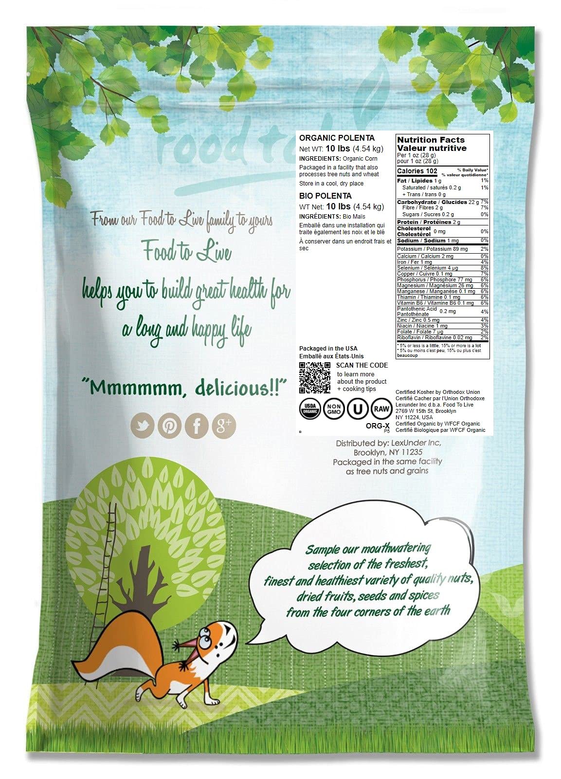 Food To Live Organic Yellow Polenta, 10 Pounds - Non-Gmo Yellow Corn Grits, Ground Cornmeal, Quick Cooking, Vegan, Kosher, Bulk,