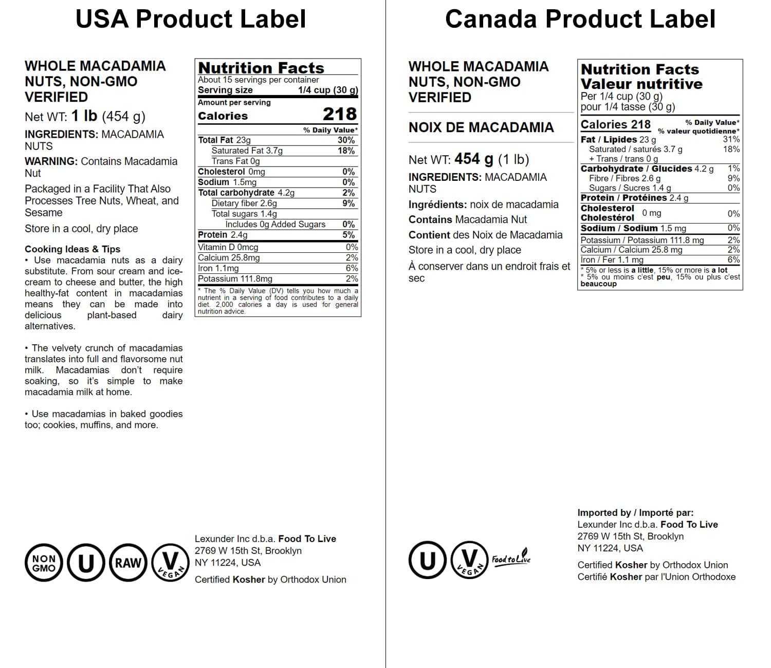 Food To Live Whole Macadamia Nuts, 1 Pound – Non-Gmo Verified, Raw, Unsalted, Unroasted, Keto Friendly, Kosher, Vegan, Bulk, Great As Snack And For Baking, Good Source Of Manganese, Thiamin, & Copper