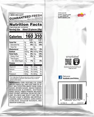 Q: What are Fritos Corn Chips Flavor Twists Honey Barbeque?A: Fritos Corn Chips Flavor Twists Honey Barbeque are a unique snack that combines the classic taste of corn chips with a sweet and tangy honey barbeque flavor. Each pack contains large 2-ounce single-serve bags, making them perfect for on-the-go snacking.