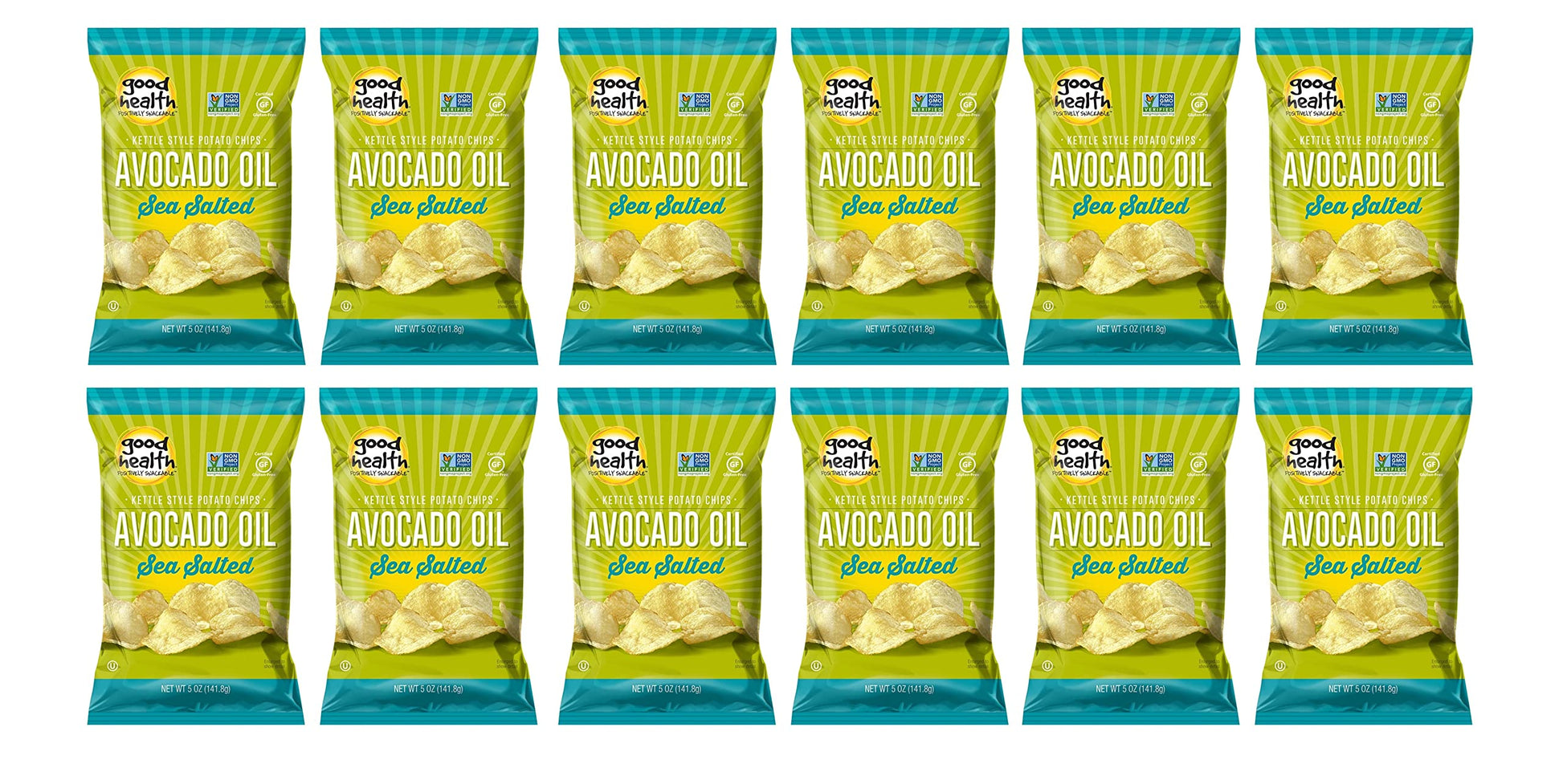 - Q: What is the serving size and packaging for Good Health Avocado Chips? A: Good Health Avocado Chips are available in a pack of twelve 5-ounce bags, totaling 60 ounces. Each bag is perfect for snacking, sharing, or enjoying on-the-go.
