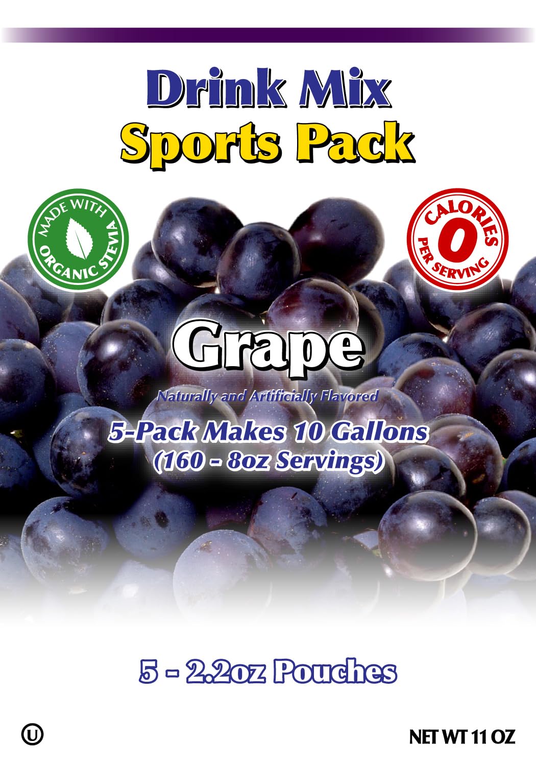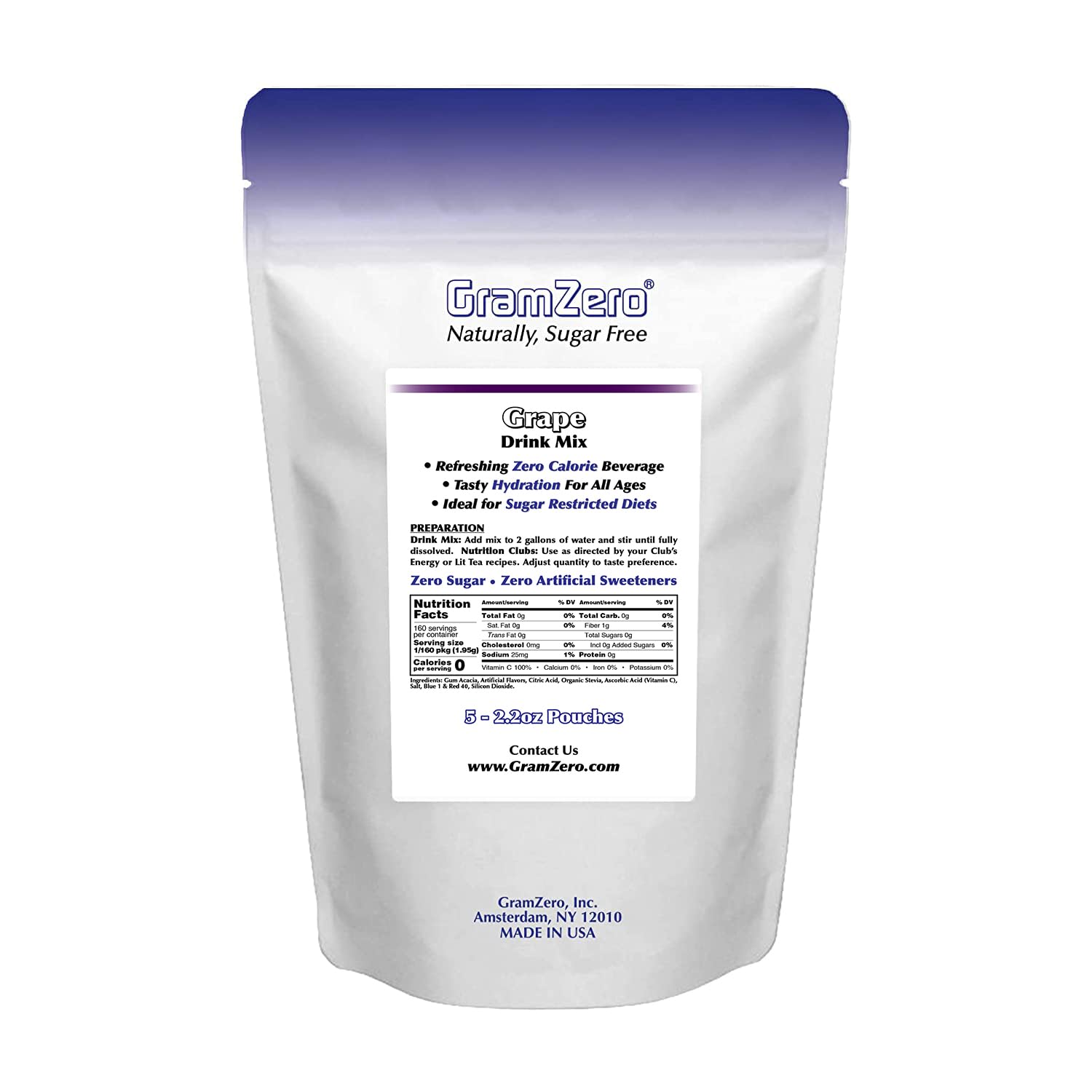 - Q: How many servings does one pouch of GramZero Grape Drink Mix make? A: Each 2.2-ounce pouch of GramZero Grape Drink Mix contains 5 inner pouches and can make approximately 2 gallons of drink, which translates to a total of 32 servings of 8 fluid ounces each, providing excellent value for your hydration needs.