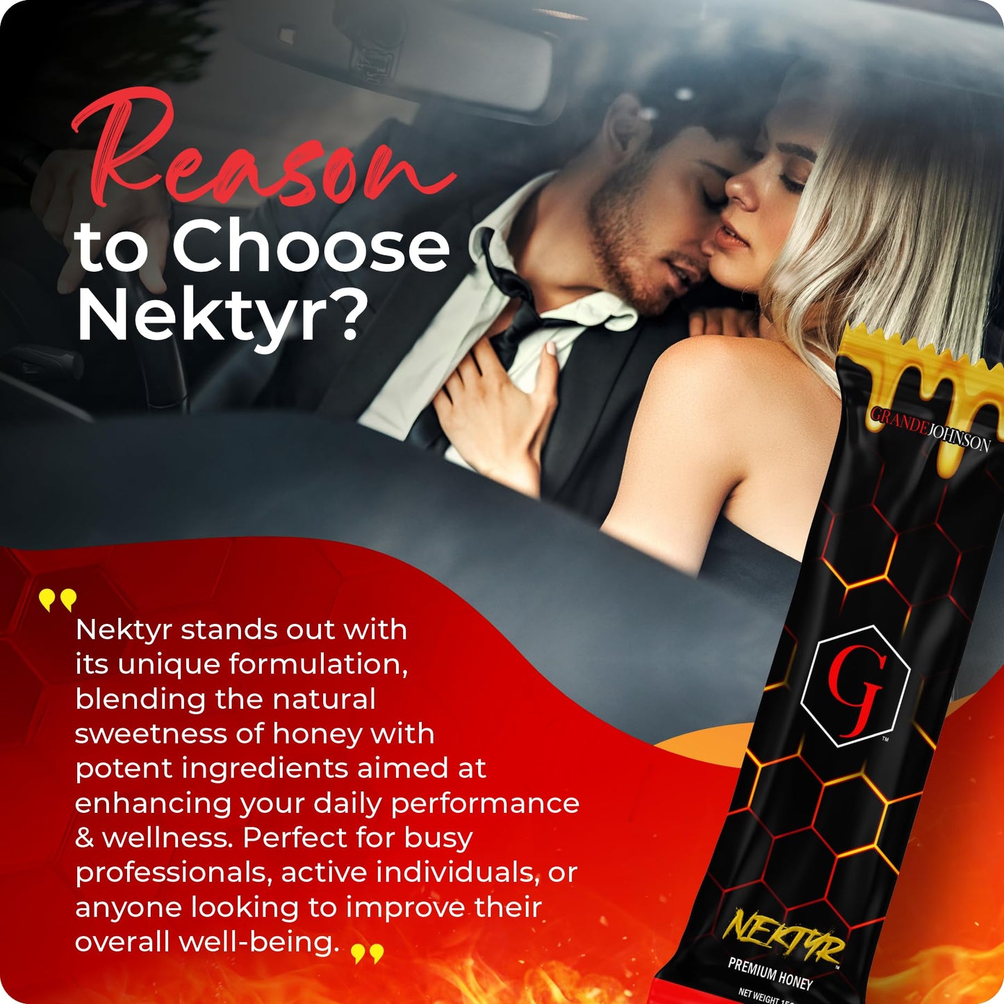 - Q: How should I consume Grande Johnson Nektyr Honey for best results? A: For optimal results, it is recommended to take one sachet of Grande Johnson Nektyr Honey every three days, preferably on an empty stomach an hour before breakfast.