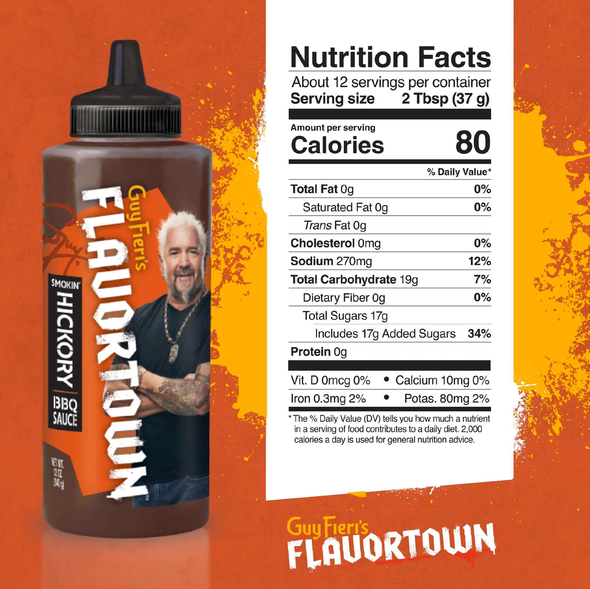 Guy Fieris Flavortown Bbq Sauce Variety Pack - Honey Bbq Sauce, Smokey Bbq Sauce, Barbecue Sauce Set, For Chicken Wings & Ribs - Smokin Hickory & Money Honey Barbecue - 12 Oz Each (Pack Of 2)