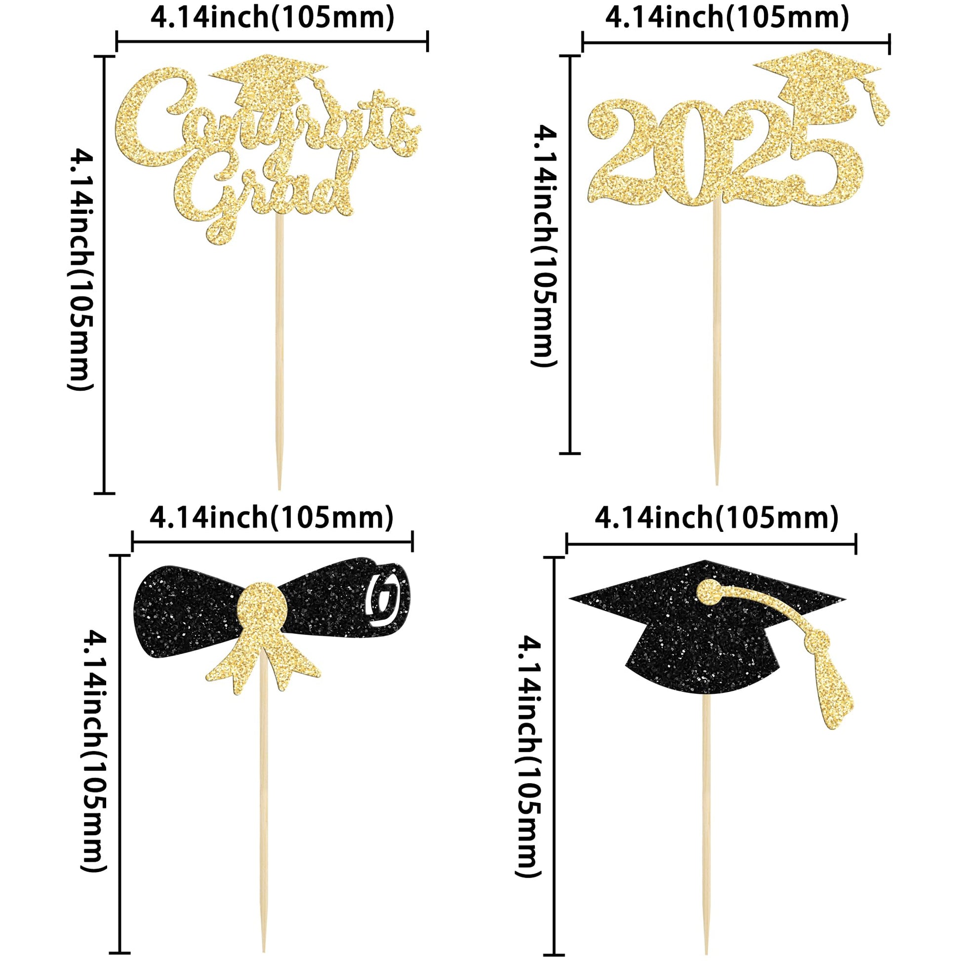 Q: What are the dimensions of the Gyufise graduation cupcake toppers?A: The Gyufise graduation cupcake toppers measure approximately 2.9 inches in width and 4.1 inches in height, including the stick.