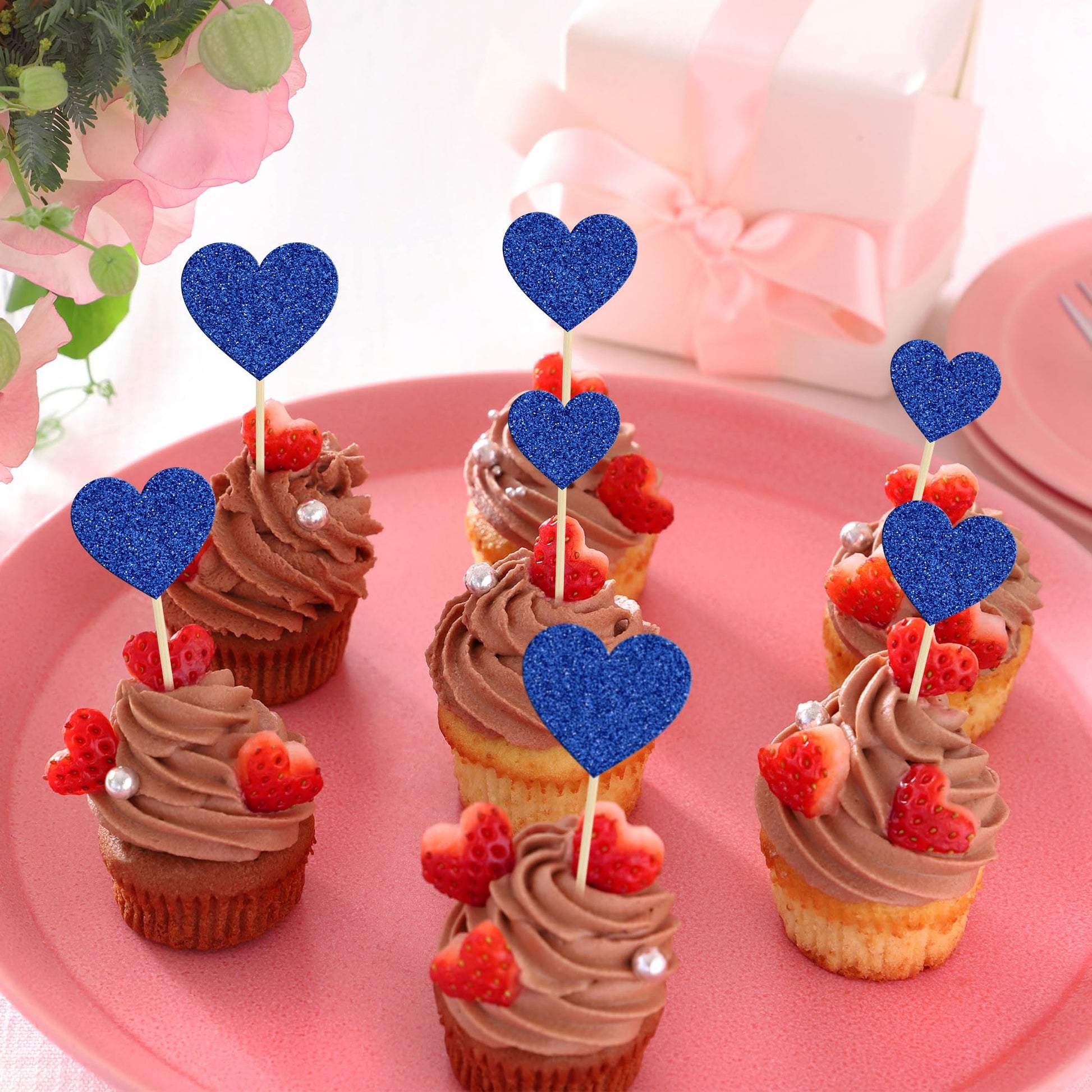 Q: What occasions are the Heart Cupcake Toppers suitable for?A: The Heart Cupcake Toppers are perfect for Valentine's Day, wedding engagements, bridal showers, and kids' birthday parties, adding a charming touch to your celebrations.