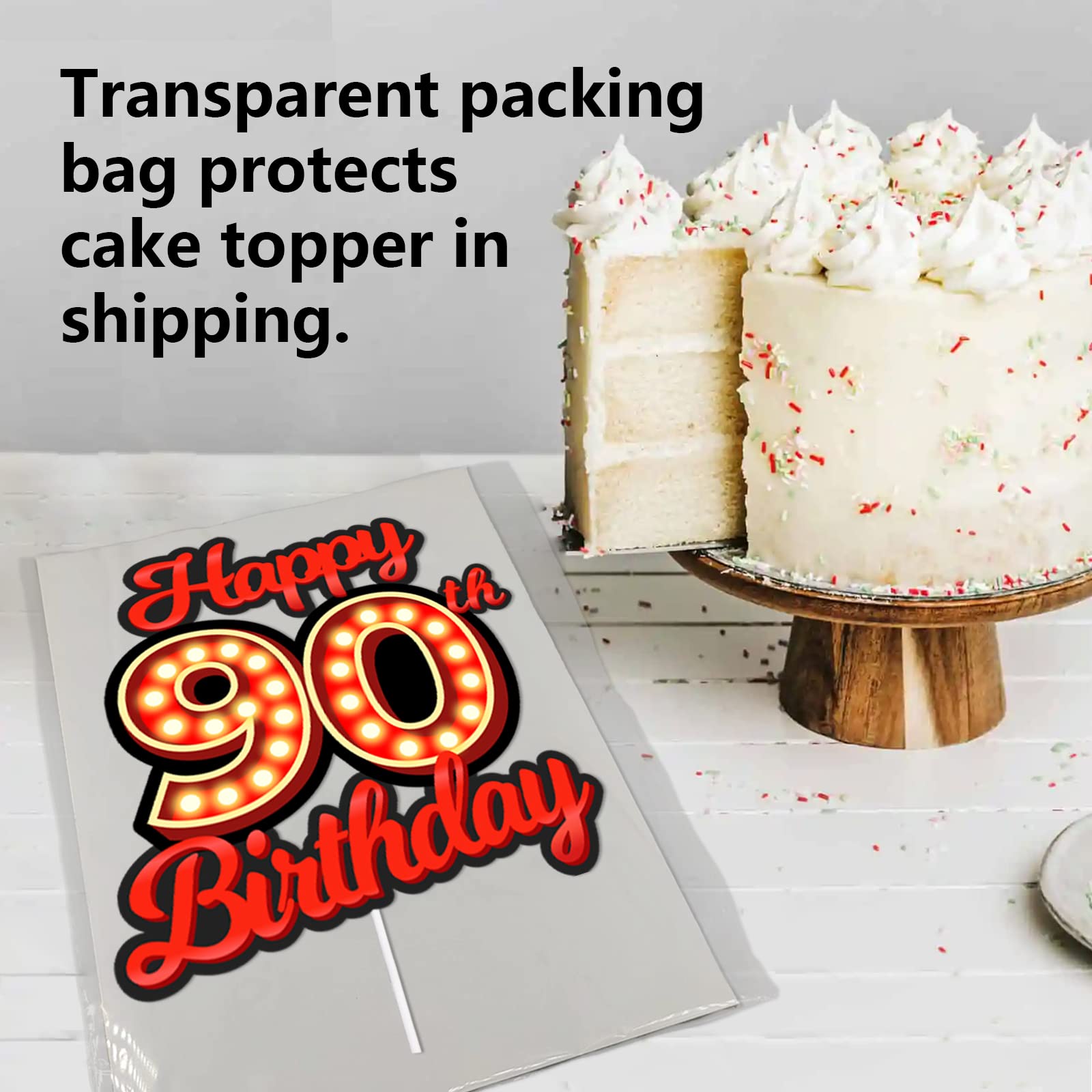Q: What occasions can the Happy 90th Birthday Cake Topper be used for?A: The Happy 90th Birthday Cake Topper is perfect for birthday parties, hen parties, movie nights, and other themed celebrations, adding a unique and romantic touch to your decor.