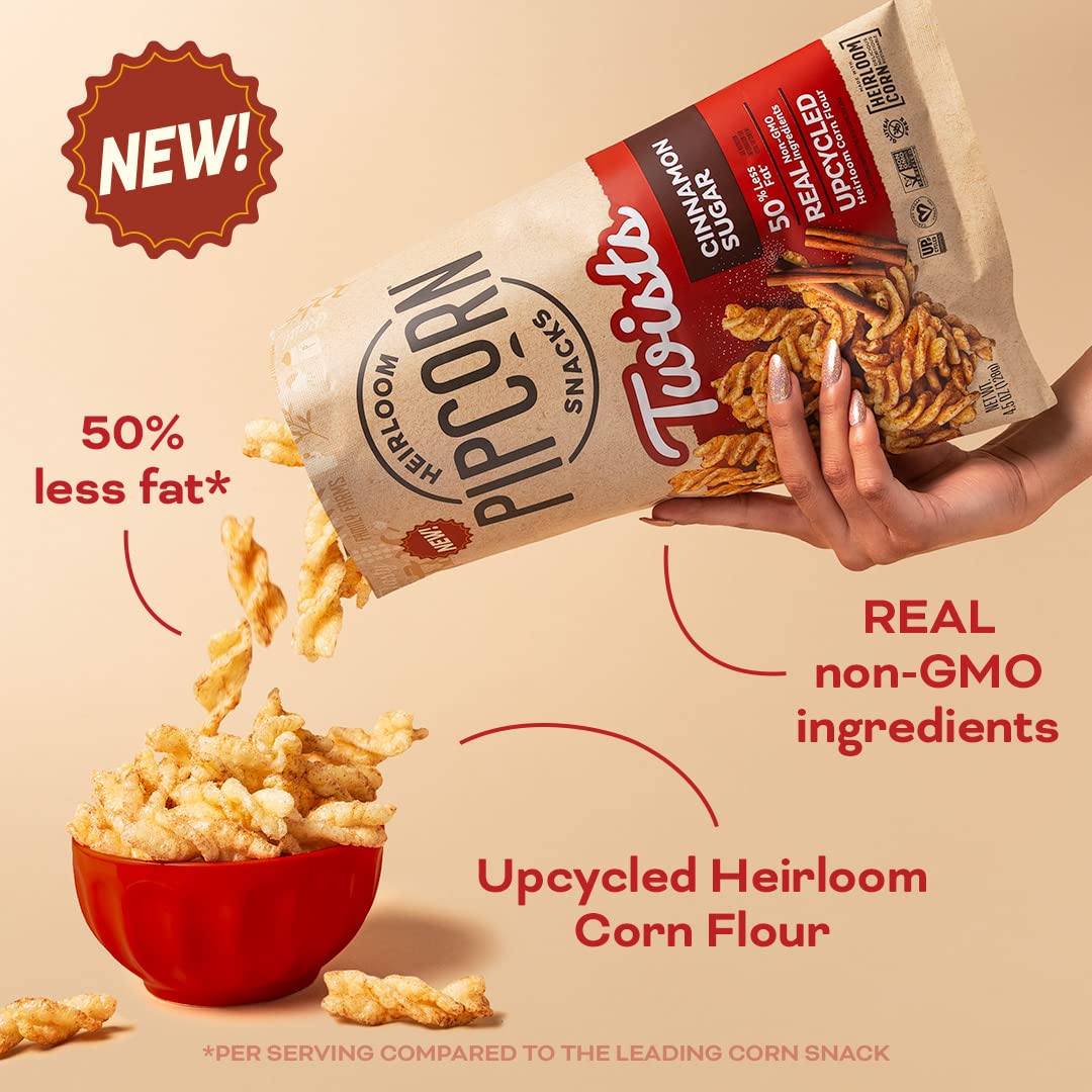 Were Bringing A New Twist To The Snack Game! Irresistible Pipcorn Crunch Meets The Classic Flavor Of Cinnamon Sugar For A Uniquely Satisfying, Omg-I-Finished-The-Bag Snacking Experience. Our All-New Twists Are Made With Sustainability In Mind By Using Upcycled Heirloom Corn Flour To Create A Flavor-Packed Shape Thats Light, Airy, And Oh-So-Crispy! You Might Even Forget That Twists Are Better For You, Too!
